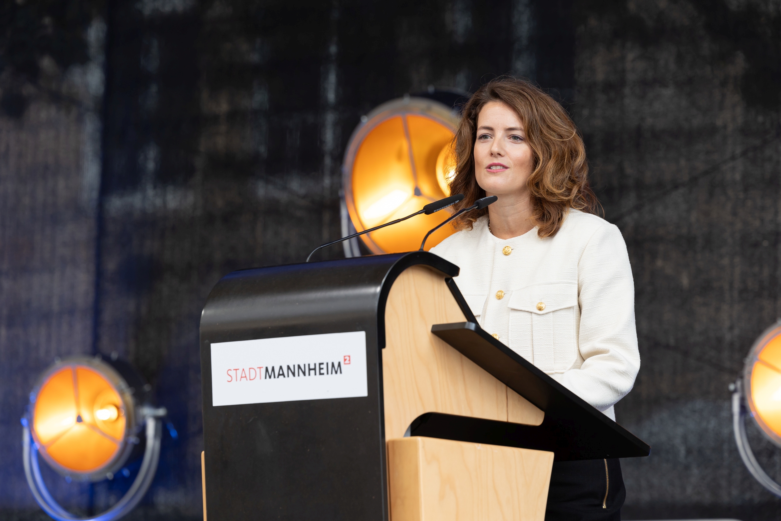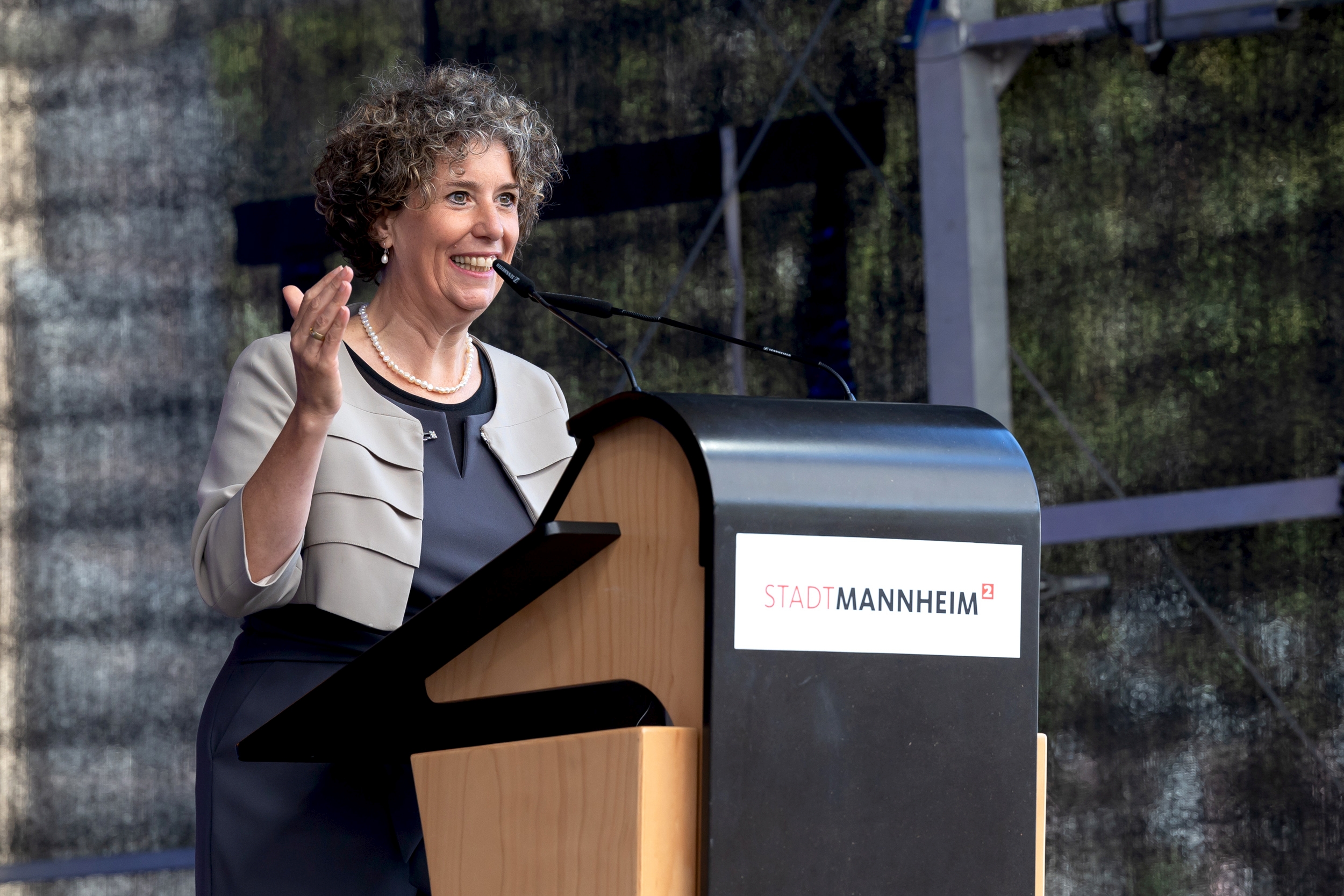 Erste Bürgermeisterin Prof. Dr. Diana Pretzell bei der Begrüßung zur Amtseinführung von Oberbürgermeister Christian Specht auf dem Toulonplatz