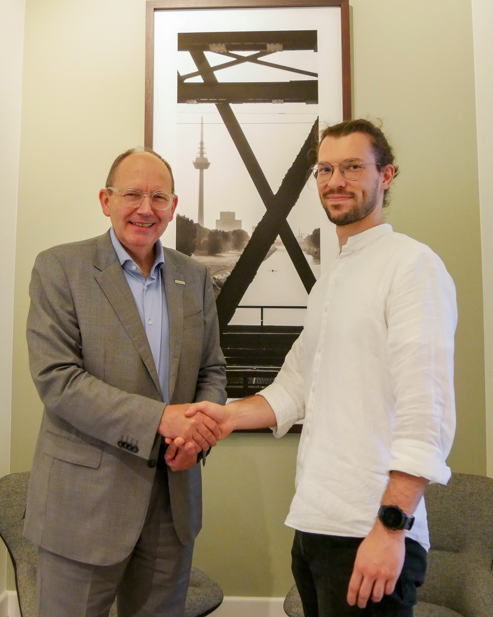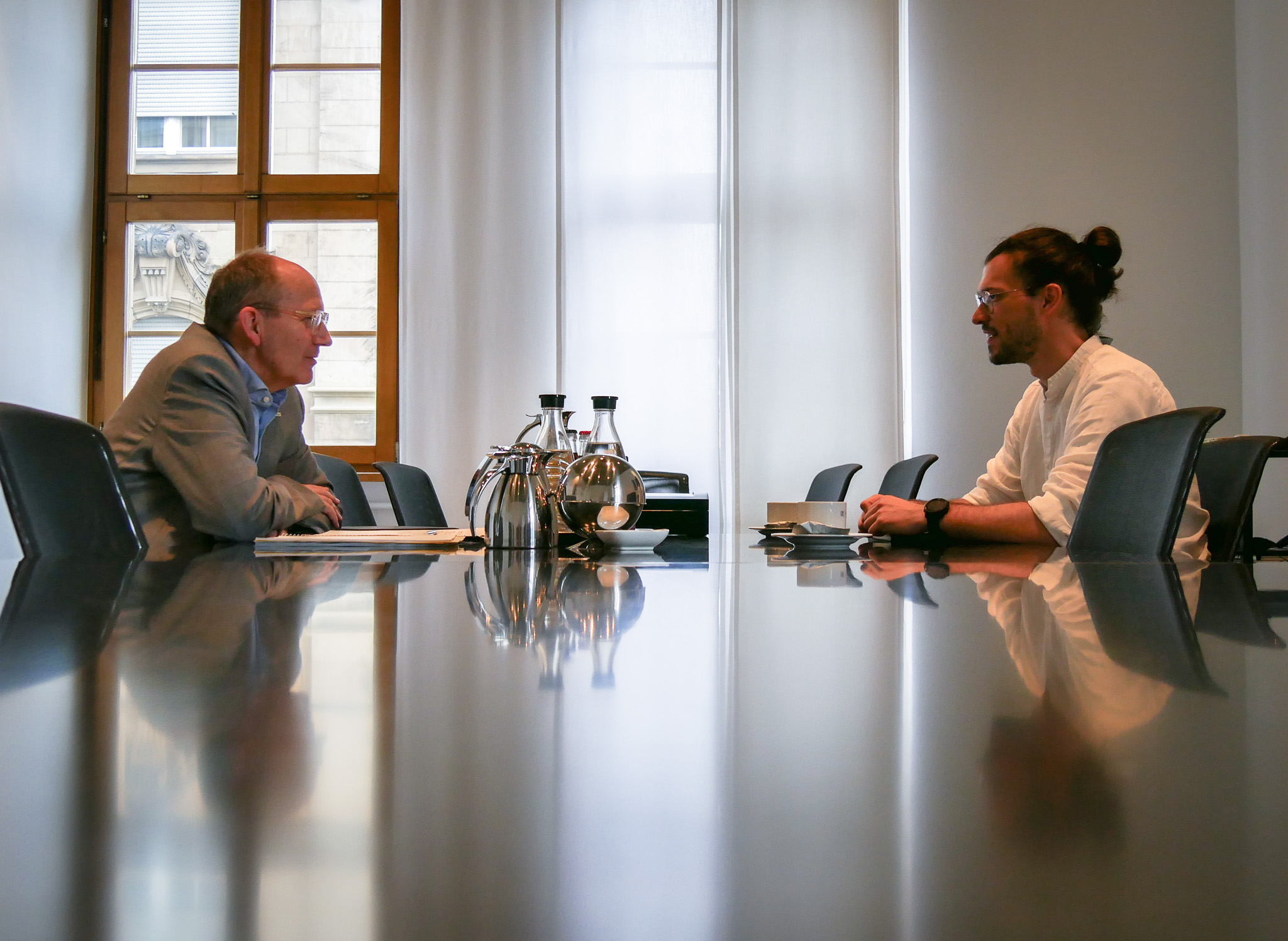 Mannheims OB Christian Specht (links) im Gespräch mit Stefan Naumer, Ansprechpartner der neuen Beratungsstelle "Wohnraum im Bestand".