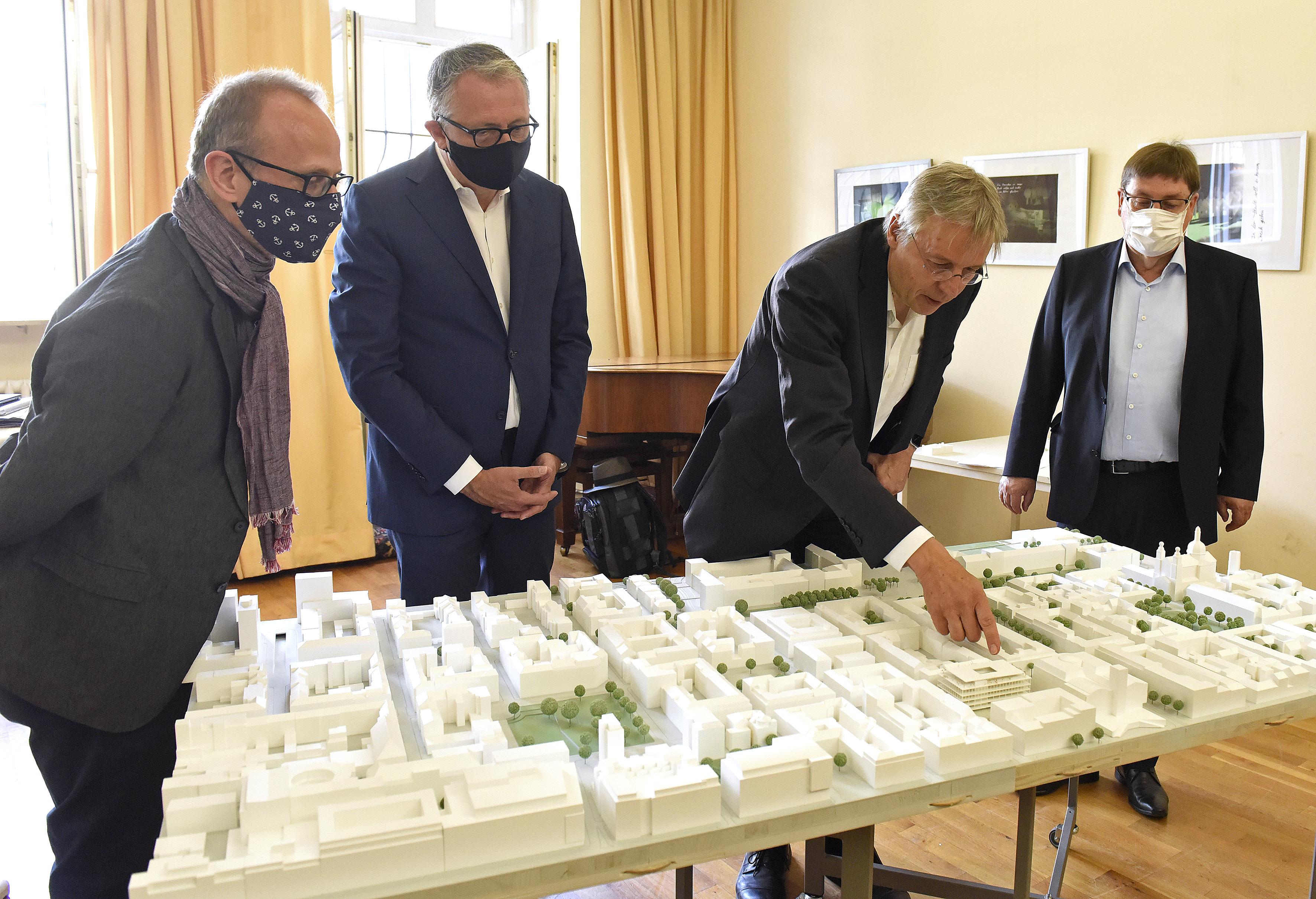 v.l.n.r.: Bildungsbürgermeister Dirk Grunert, Oberbürgermeister Dr. Peter Kurz, Klaus Elliger, Fachbereichsleiter Stadtplanung, Baubürgermeister Lothar Quast