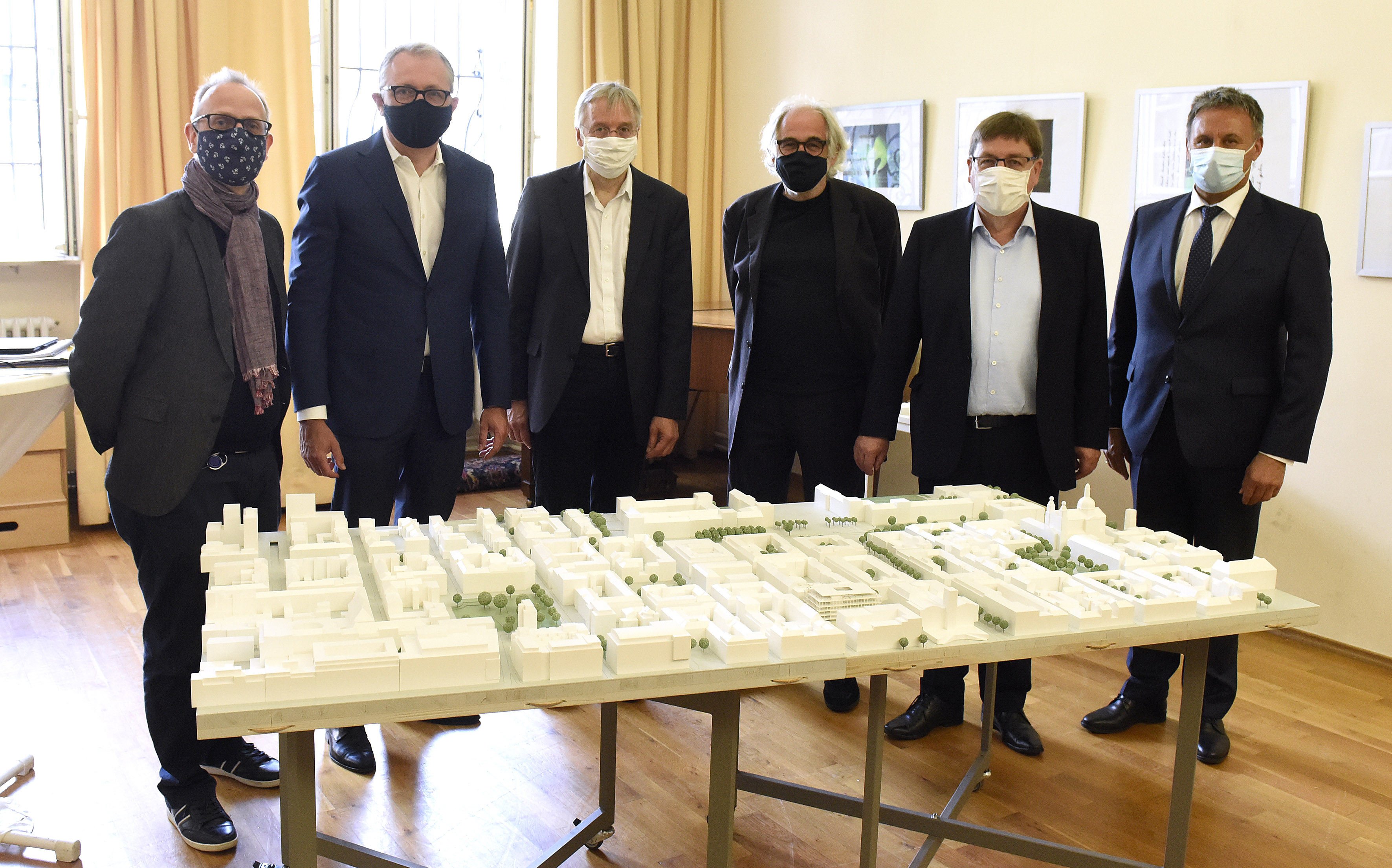v.l.n.r.: Bildungsbürgermeister Dirk Grunert, OB Dr. Peter Kurz, Klaus Elliger, Fachbereichsleiter Stadtplanung, Prof. Michael Braum, Geschäftsführer IBA Heidelberg, Baubürgermeister Lothar Quast, Karl-Ludwig Ballreich, Geschäftführer MPB