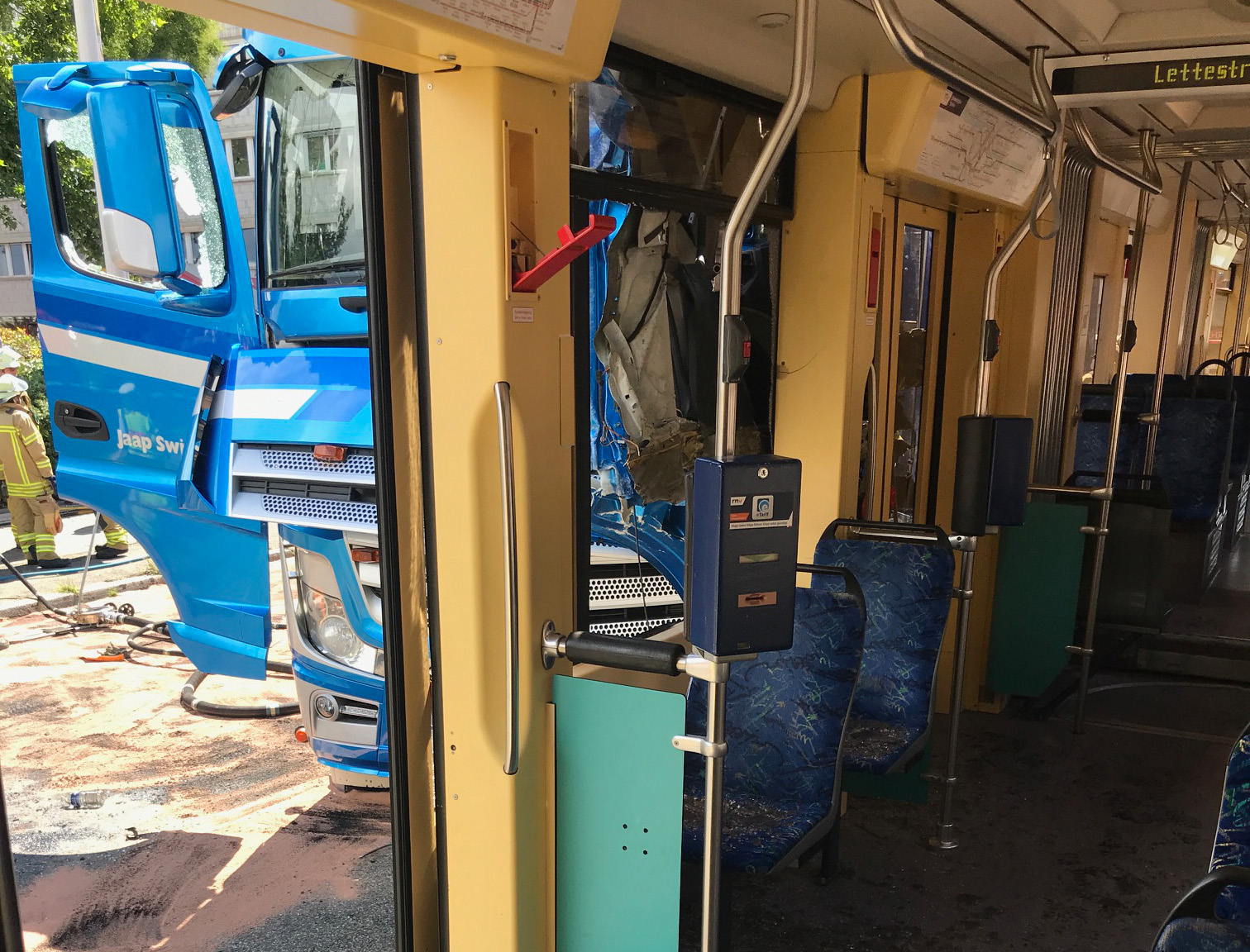 Verkehrsunfall: LKW kollidiert mit Straßenbahn