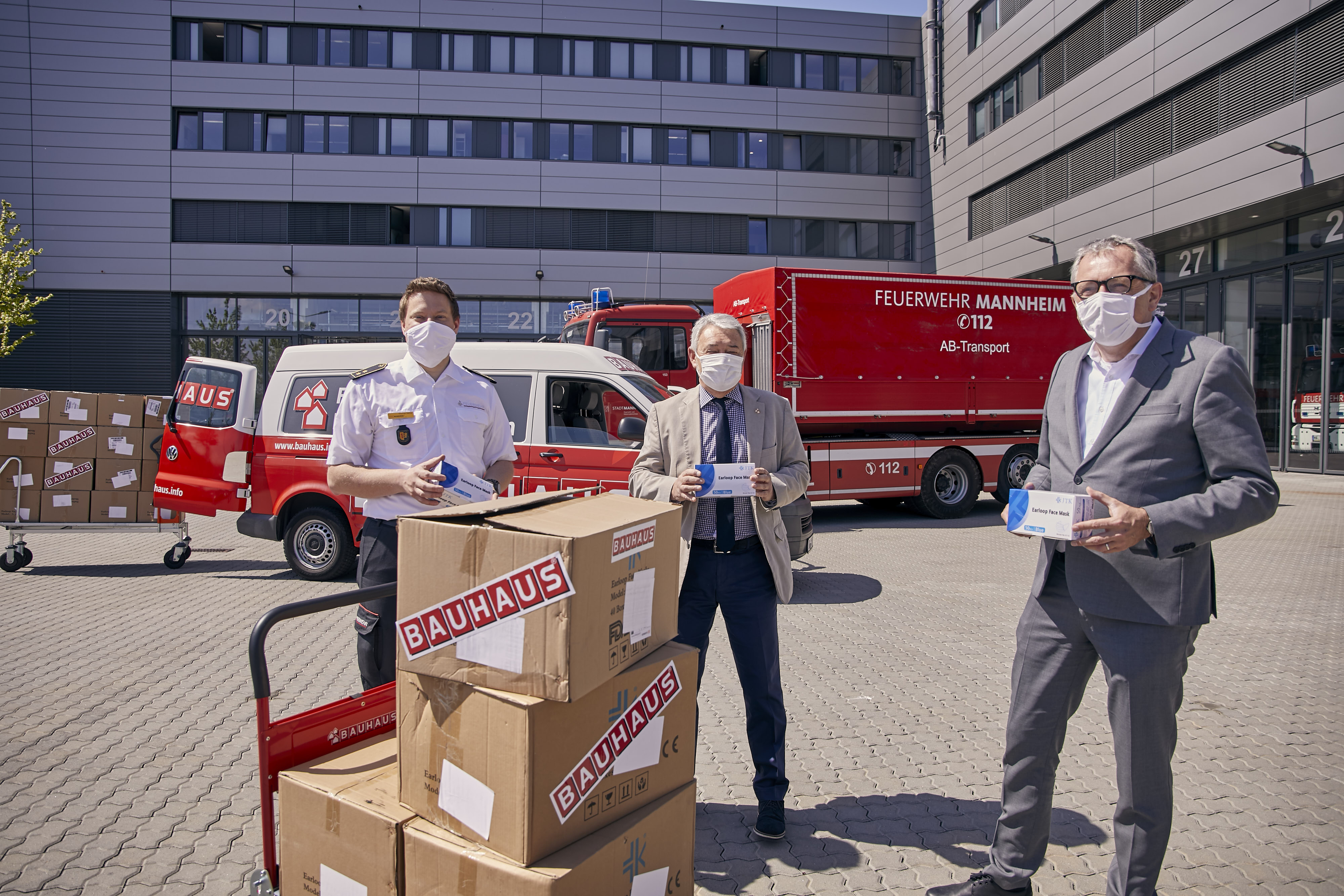 Unser Bild zeigt von links: Thomas Näther (Leiter Führungsstab der Berufsfeuerwehr Mannheim), Dieter Bien (Mitglied der Geschäftsführung bei BAUHAUS) und Dr. Peter Kurz (Oberbürgermeister Stadt Mannheim)