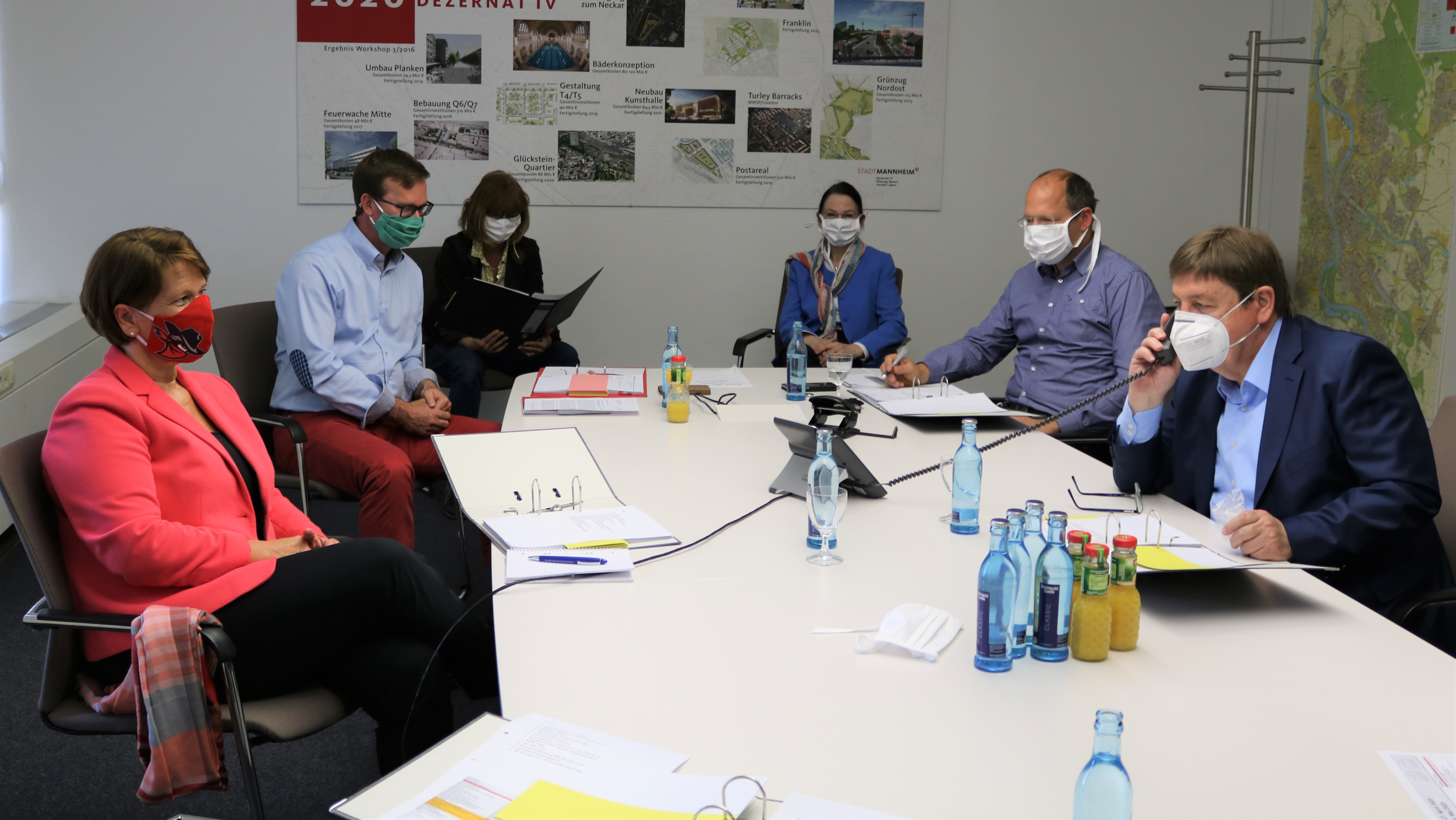 v.l.n.r.: Dr. Sabine Hamann, Vorsitzende Sportkreis Mannheim e.V., Uwe Kaliske, Fachbereichsleitung Sport und Freizeit, Regina Reich, Dezernat IV, Christiane Ram, Leiterin der Wirtschaftsförderung, Ingo Kirrinnis, Abteilungsleiter Sport und Freizeit, Bürgermeister Lothar Quast