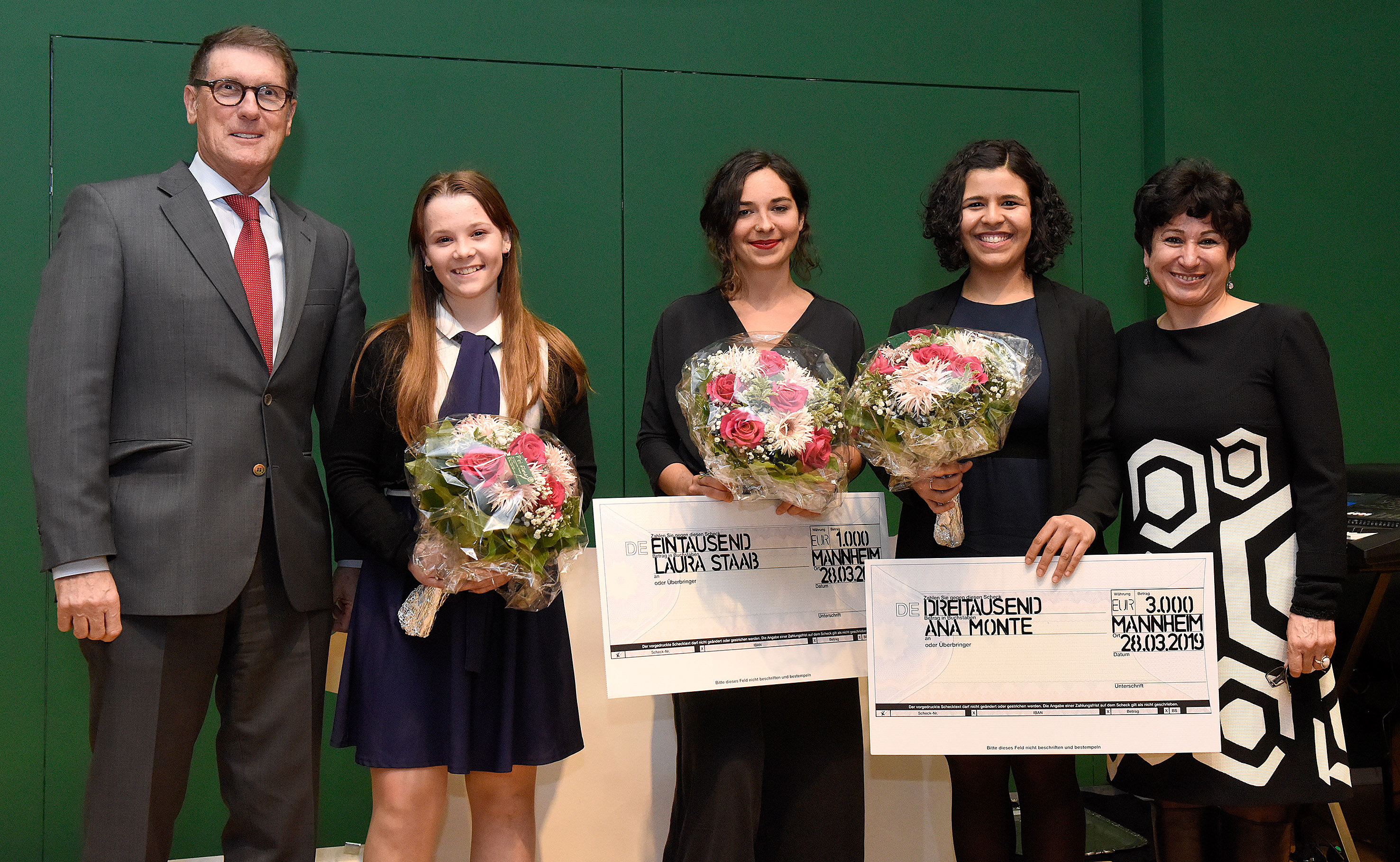 Auf dem Bild: Kulturbürgermeister Michael Grötsch, Amber Laurène Arundel (lobende Erwähnung), Filmemacherin Laura Elisabeth Staab (Helene-Hecht-Nachwuchspreisträgerin), Sounddesignerin Ana Monte (Helene-Hecht-Preisträgerin)Gleichstellungsbeauftragte Zahra Deilami