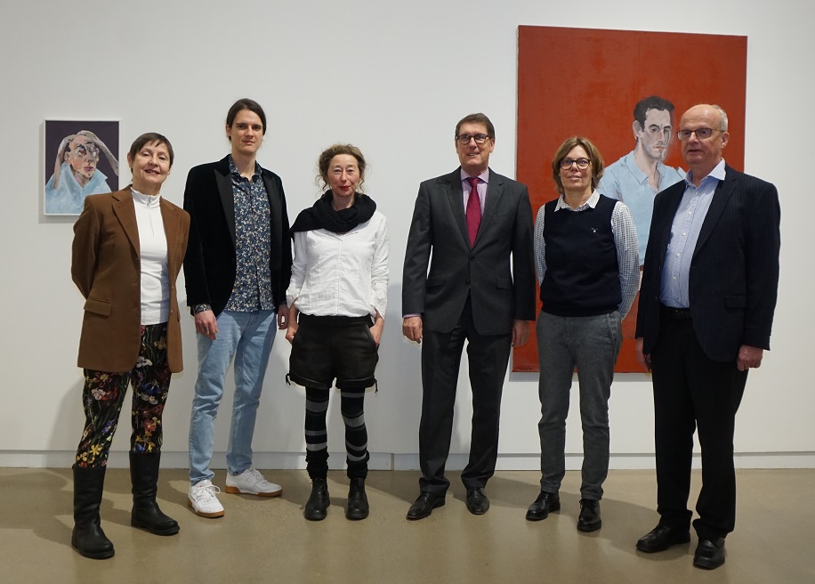 Auf dem Bild: Sabine Schirra (Leiterin des Kulturamtes), Amadeus Certa (Preisträger), Ana Laibach (Preisträgerin), Michael Grötsch (Kulturbürgermeister), Stefanie Kleinsorge (Leiterin Port25), Prof. Peter Frankenberg (Vorstand Heinrich-Vetter-Stiftung)