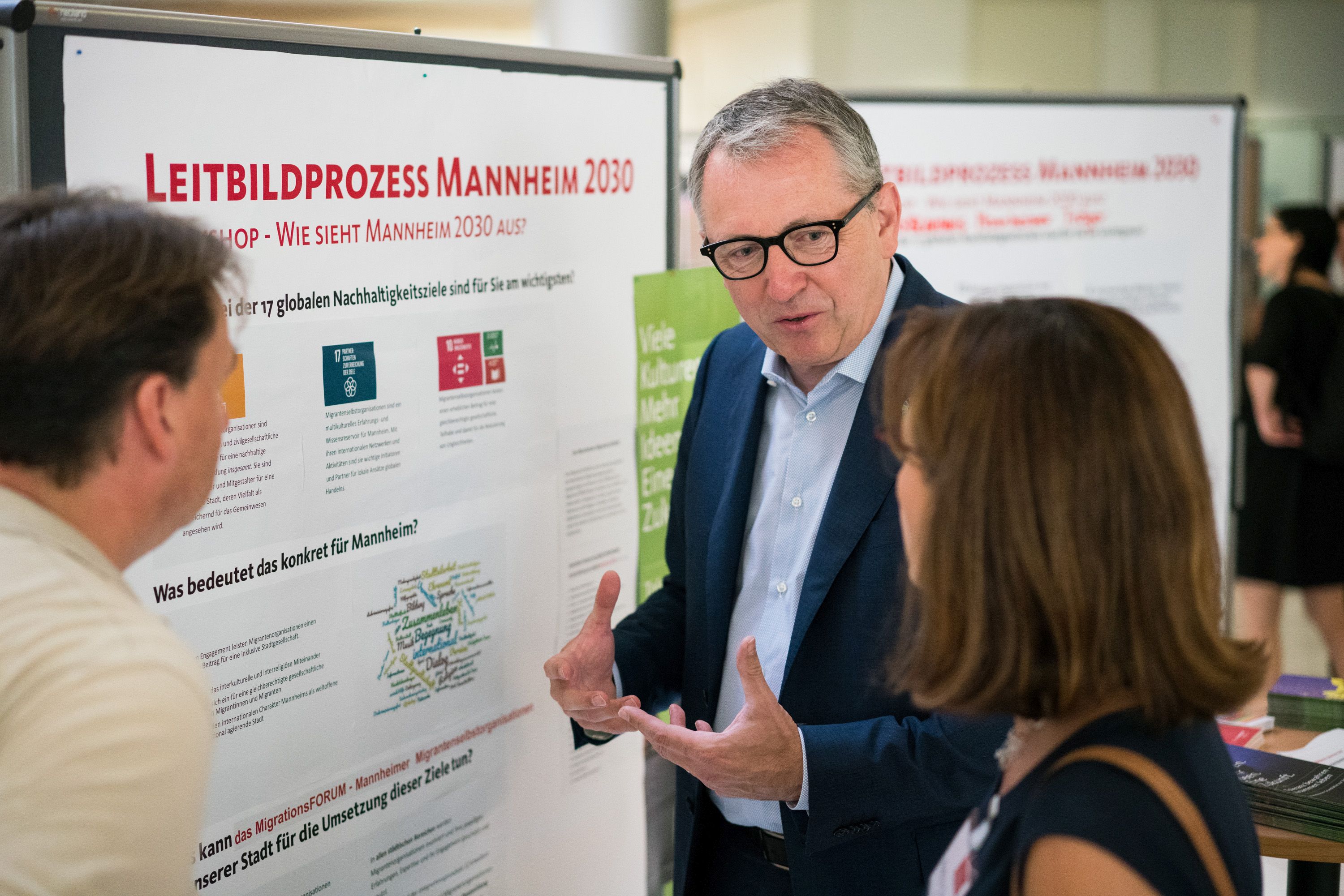 Unser Bild zeigt OB Dr. Peter Kurz im Gespräch mit Teilnehmern des Bürgerdialogs zum Leitbild Mannheim 2030.