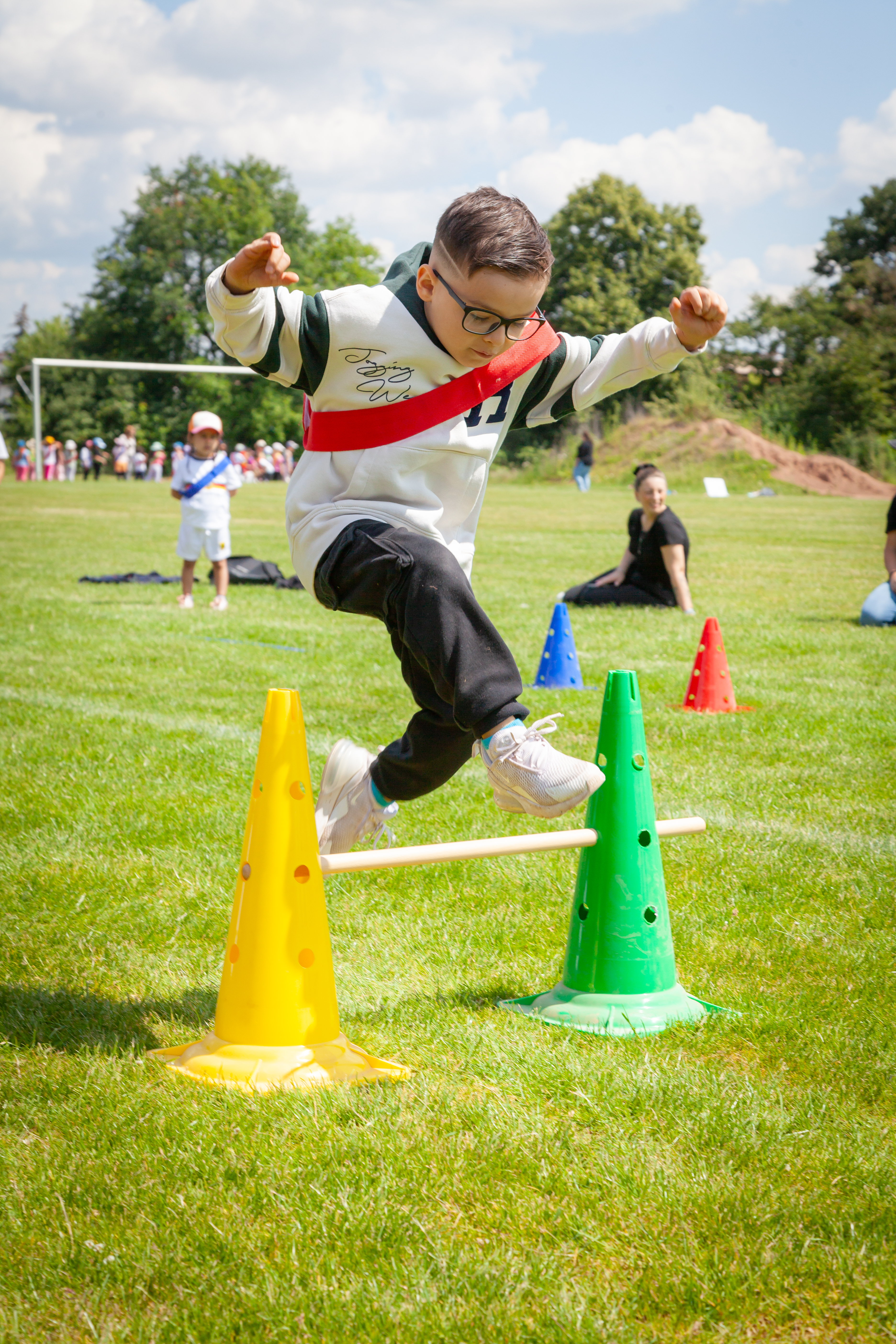 Die Kinder konnten in verschiedenen Disziplinen wie Weitsprung, Weitwurf, Duolon fahren, Zielwerfen, Hindernislauf und einer einstudierten Flashmob-Choreografie ihre sportlichen Fähigkeiten ausprobieren. Viel mehr als der Wettbewerb stand dabei der Spaß und das Miteinander im Vordergrund. Jedes Kind durfte deshalb am Ende stolz eine verdiente Medaille mit nach Hause nehmen.