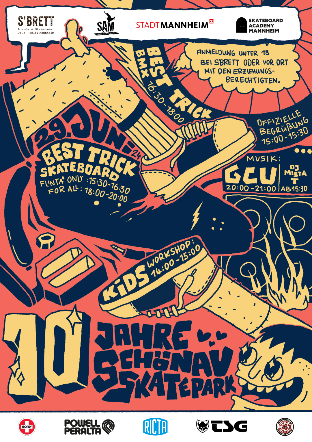Die Anmeldung zum Kids-Workshop ist am Tag selbst ab 13:30 Uhr möglich. Die Anmeldung zu den Contests ist ab 14 Uhr möglich. Skaterinnen und Skater unter 18 Jahren werden gebeten, die formlose Einverständniserklärung der Erziehungsberechtigten mitzubringen.