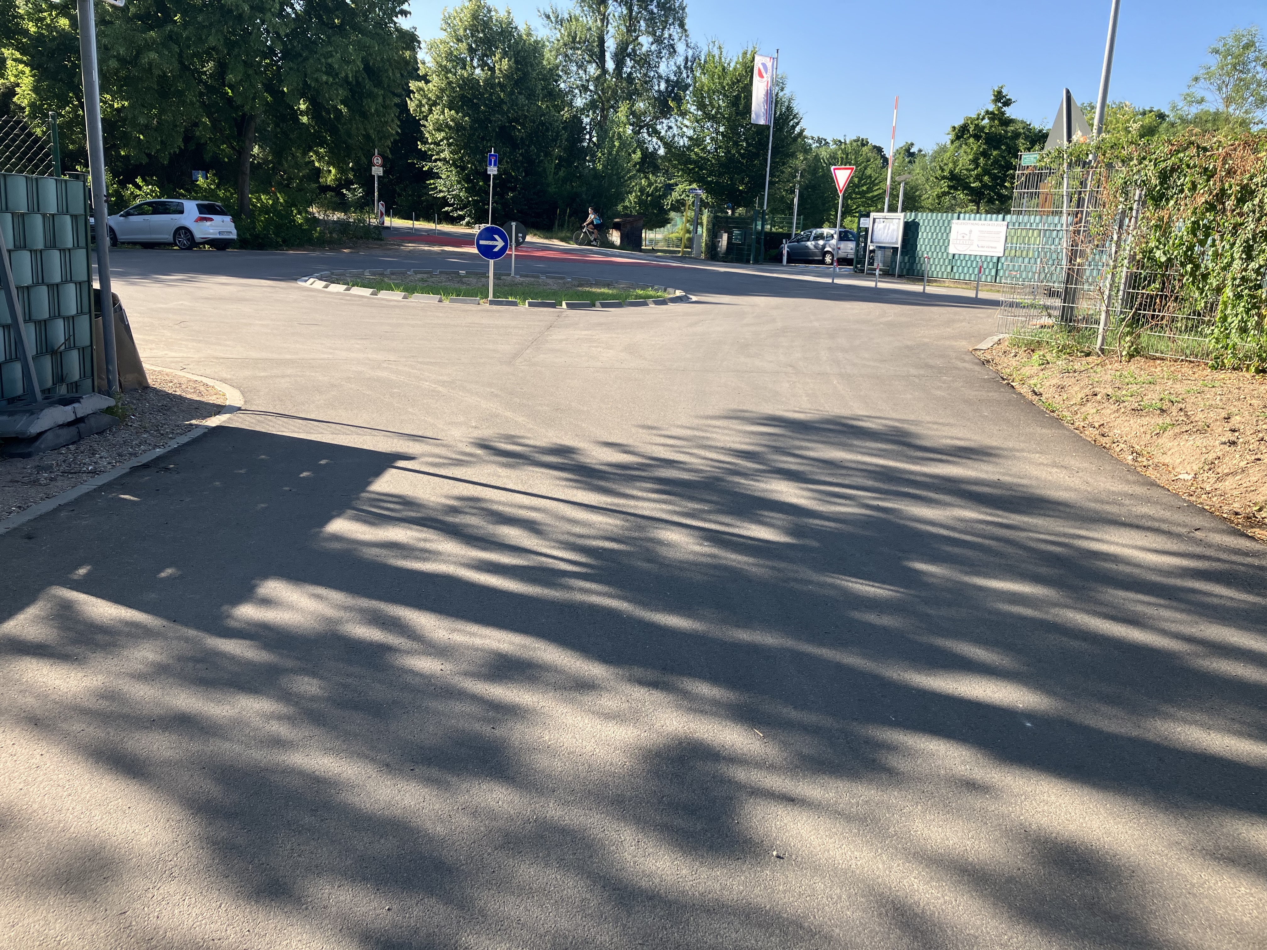 Nach Abschluss der Maßnahme kann nun kurzfristig zur Verbesserung der Verkehrssicherheit der Radfahrer und Fußgänger der Straßenabschnitt „Am Neckarkanal“, bei Beibehaltung der Zufahrtsmöglichkeiten zum MHC, autofrei werden.