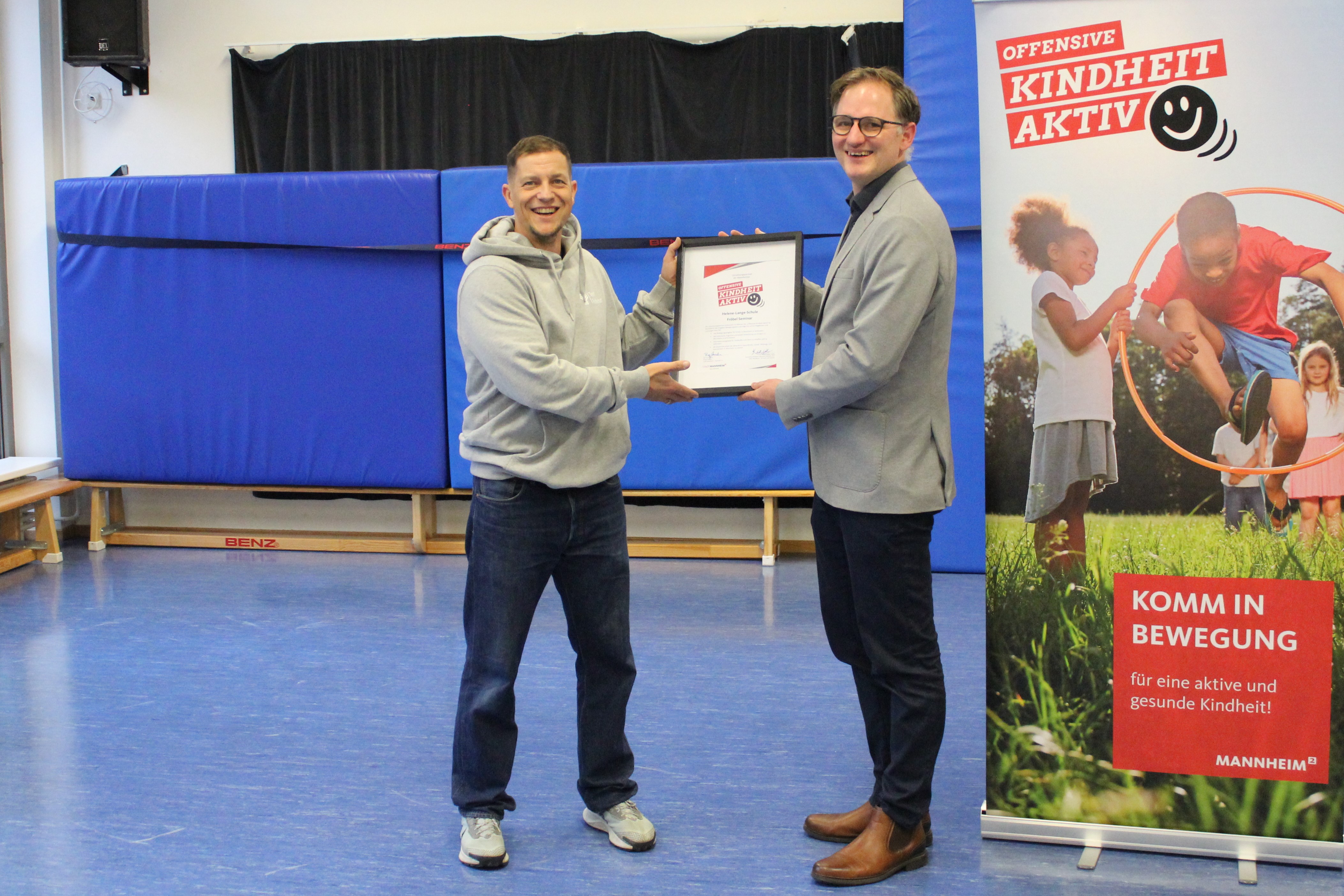 Mit dem „Mannheimer Bewegungspass“ bietet die Stadt Mannheim seit 2023 ein niederschwelliges Angebot für Kinder im Kindergartenalter, ihre Bewegung und motorischen Fähigkeiten zu fördern. Um das Konzept langfristig und nachhaltig umzusetzen, setzt das Projekt nun auch auf die Zusammenarbeit mit Partnern aus dem Bildungsbereich, den Schulen für Sozialpädagogik, an denen die Fachkräfte der Zukunft ausgebildet werden. Der Fachbereich Sport und Freizeit freut sich mit dem Fröbel-Seminar an der Helene-Lange-Schule einen engagierten Partner aus diesem Bereich gefunden zu haben, dem es bereits in diesem Schuljahr gelungen ist, die Inhalte des Bewegungspasses in den regulären Stundenplan zu integrieren.