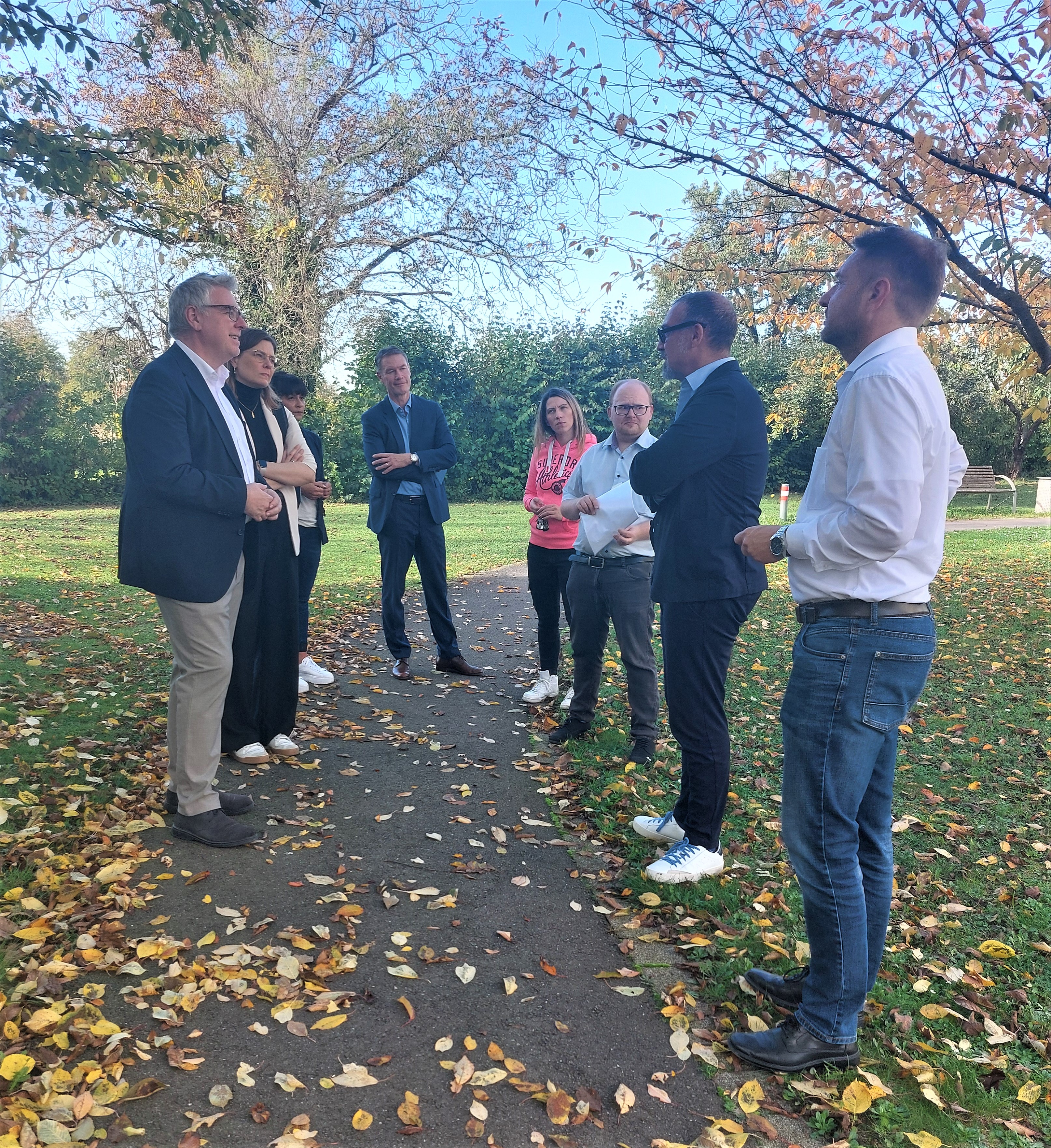 Die Stadtteile Mannheims sind Bezugsorte des persönlichen Lebensumfelds und soziale Treffpunkte ihrer Bewohner*innen – in dieser Woche besuchte Bürgermeister Thorsten Riehle den Stadtteil Feudenheim. Der Rundgang vor Ort bildete den Auftakt einer losen Reihe, im Rahmen derer der Dezernent jeweils einen ganzen Arbeitstag einer Auswahl an Themen der Bereiche Wirtschaft, Soziales oder Kultur im jeweiligen Stadtteil widmen wird. „Mir ist es wichtig, die Themen aus meinem Zuständigkeitsbereichen, die in den Stadtteilen anliegen, zu bearbeiten und in den Dialog mit den Akteur*innen zu treten“, sagte Bürgermeister Thorsten Riehle anlässlich der Begrüßung der Vertreter*innen des Gewerbevereins Feudenheim e.V. im Gewerbegebiet Talstaße. Im gemeinsamen Austausch mit Christiane Ram, Leiterin der Wirtschaftsförderung, und Firmenkundenbetreuer Patrick Schütz wurden die Entwicklungsmöglichkeiten der ansässigen Betriebe ebenso wie mögliche Potenziale für die Ansiedlung neuer Betriebe im Sinne einer Innenentwicklung von Gewerbeflächen ausgelotet.