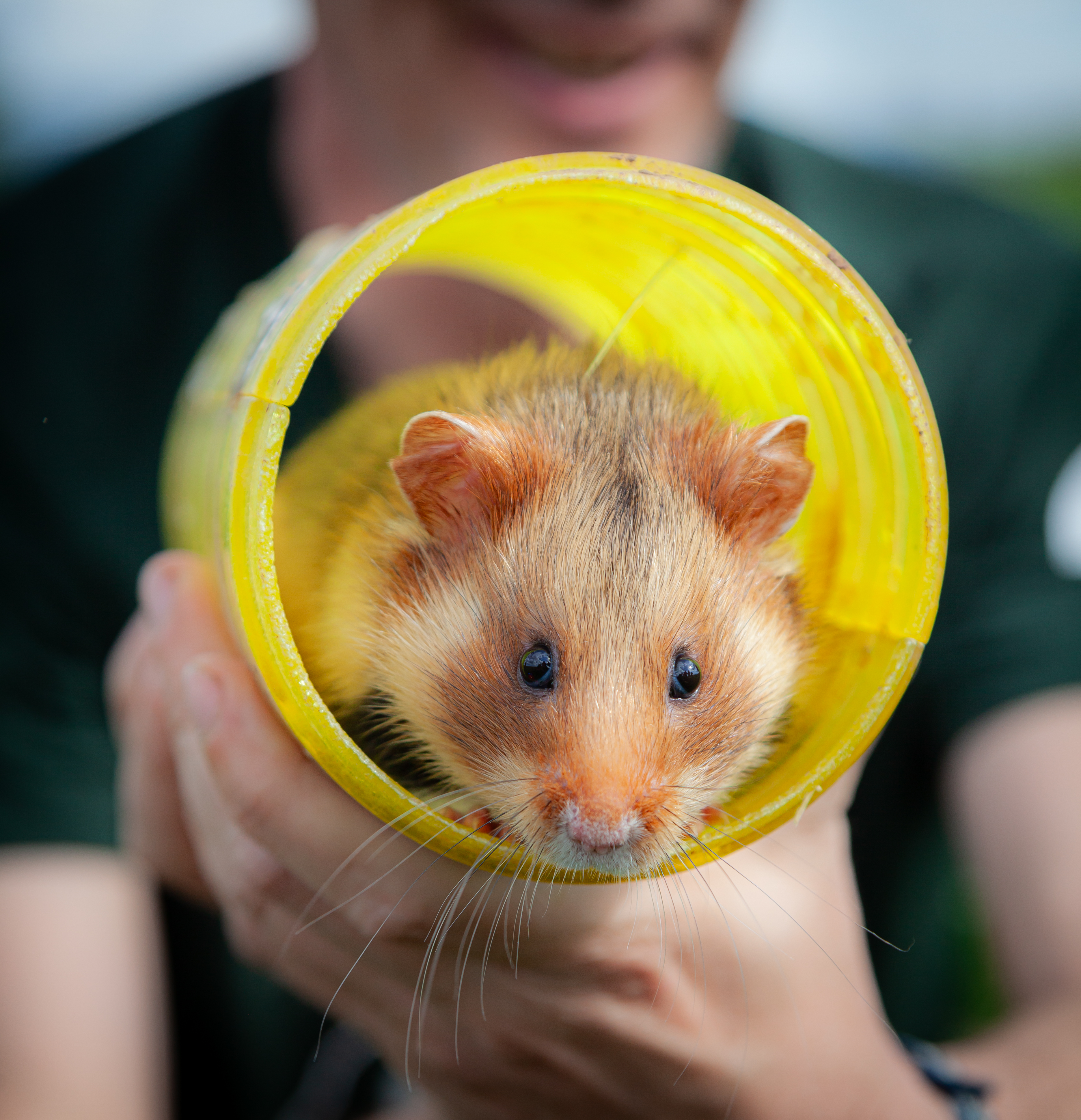 „Ich freue mich jedes Jahr auf die Auswilderung dieser sympathischen Tierart. Doch der Termin hat einen ernsten Hintergrund. Mit der Wiederansiedlung wollen wir langfristig einen überlebensfähigen Tierbestand etablieren. Dabei sind wir zwar auf einem guten Weg, aber noch nicht am Ziel. Dieses erreichen wir auch nur gemeinsam mit den ortsansässigen Landwirten und deren feldhamsterfreundlichen Bewirtschaftung der Äcker. Diese gute Zusammenarbeit mit den ortsansässigen Landwirten möchte ich besonders betonen und mich dafür bedanken“, erklärt Erste Bürgermeisterin Prof. Dr. Diana Pretzell im Rahmen der Auswilderung. In Mannheim bewirtschaften mehrere Landwirte auf rund 165 Hektar ihre Ackerflächen feldhamstergerecht, sodass der Feldhamster dort einen geeigneten Lebensraum findet. Sie arbeiten im Auftrag der Naturschutzbehörden der Stadt Mannheim und des Regierungspräsidiums Karlsruhe. Im Jahr 2023 wurden insgesamt ca. 433 ha im Auftrag der Stadt kartiert, mit dem Ergebnis, dass man 134 Hamsterbauten festgestellt hat.
