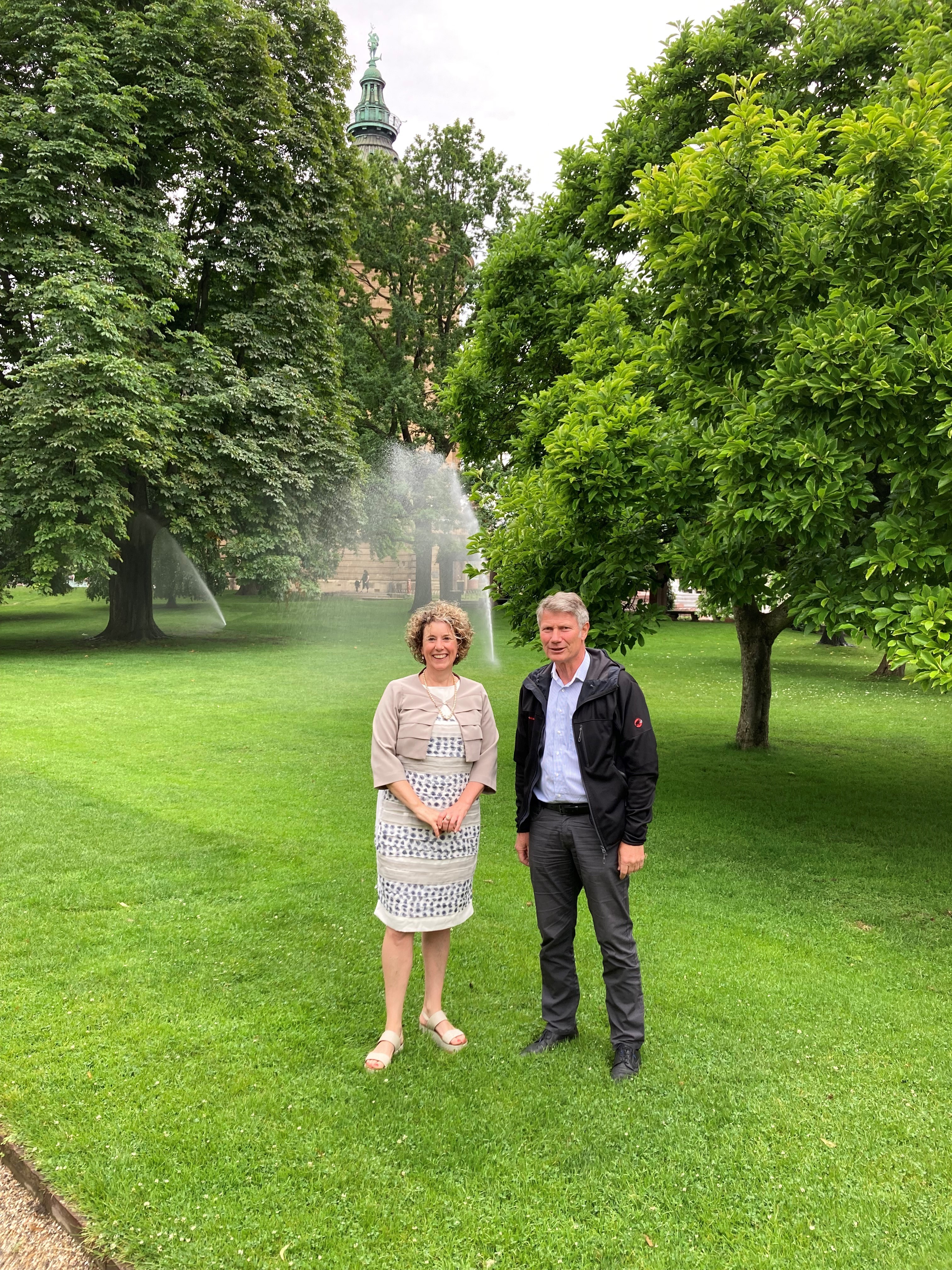 Seit Mitte Oktober hatte der Stadtraumservice an der neuen Beregnungsanlage gearbeitet. Die Grünfläche war dafür abschnittsweise gesperrt worden. Jetzt wird sie dank der neuen Beregnungsanlage mit ihrer zeitgemäßen Steuerung effizienter gewässert. Die neue Anlage spart auch wertvolles Trinkwasser, denn sie ist an einen neuen Brunnen angeschlossen, der ebenfalls eigens dafür gebaut wurde. Ein weiterer positiver Effekt: Mit der neuen Beregnungsanlage und der Fontänenanlage trägt der Friedrichsplatz künftig durch seine Verdunstungseffekte bei steigenden Temperaturen zur Kühlung der Innenstadt bei.