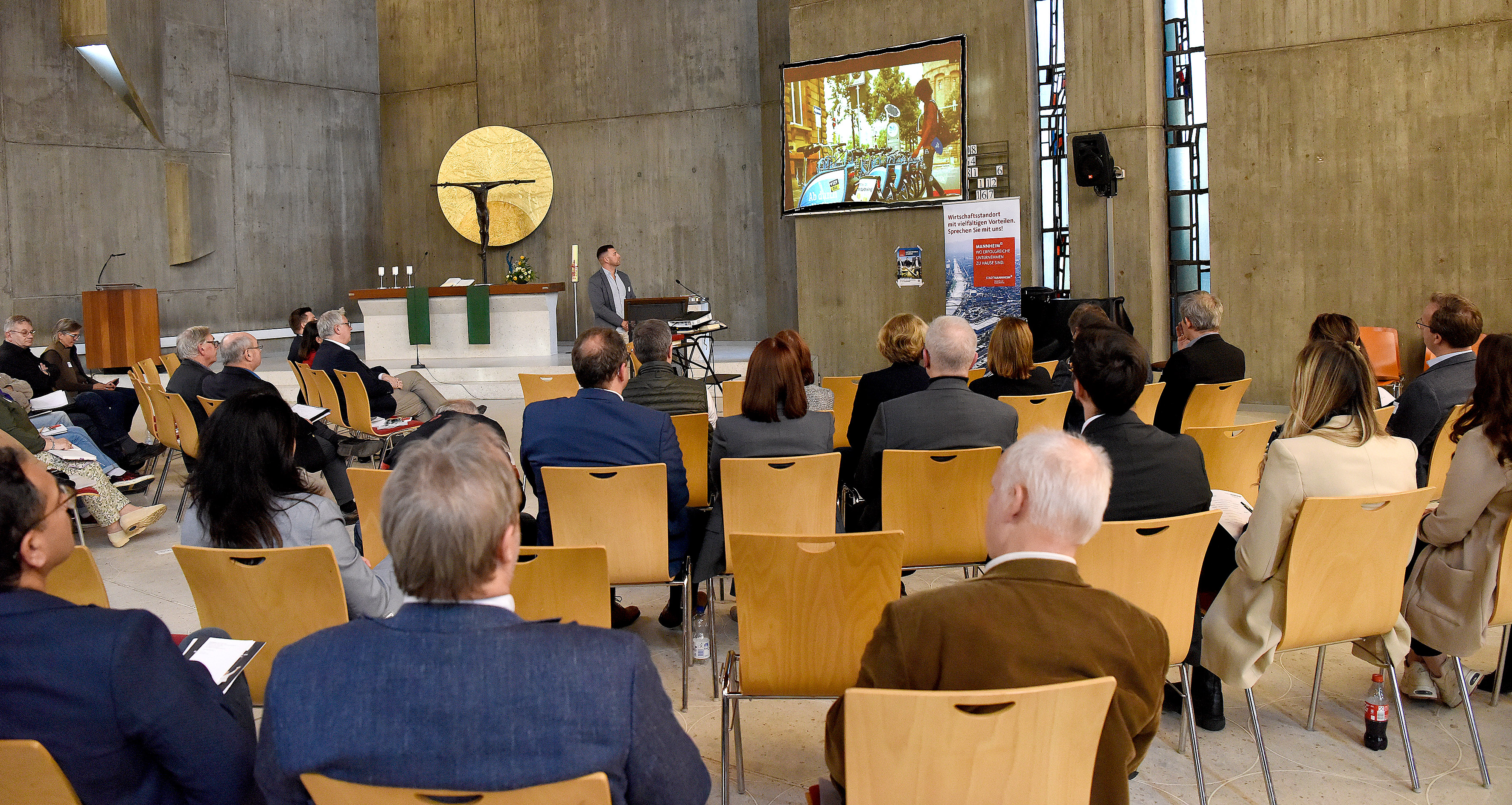 Mit den Gewerbeforen hat der Fachbereich für Wirtschafts- und Strukturförderung ein Veranstaltungsformat reaktiviert, das es unter dem Titel „Gewerbegebietsabende“ bereits vor Corona gab. Nach dem Gewerbegebiet Friedrichsfeld im April dieses Jahres hatte man nun in die Rheinauer Versöhnungskirche eingeladen. „Ich freue mich, dass wir uns genau an diesem Ort treffen, an dem auch Kirche neu gedacht wird“, mit diesen Worten begrüßte Wirtschaftsbürgermeister Thorsten Riehle die Gäste. Denn auch das Gewerbeforum beschäftige sich mit der Frage „Wo wollen wir hin?“ „Der Austausch mit Ihnen ist mir und dem Team der Wirtschaftsförderung mit Christiane Ram an der Spitze wichtig. Uns interessiert, was Sie bewegt, und wie wir Dinge besser zusammenbringen können“, sagte Riehle. Er betonte: „Die Stadt lebt in hohem Maß davon, dass Sie unternehmerisch tätig sind – als Arbeitgeber, als Steuerzahler und viele von Ihnen auch ehrenamtlich.“ Daher wolle man den Mannheimer Unternehmen mit dem Gewerbeforum Hilfestellungen zu verschiedenen Themen, wie beispielsweise Klima- und Umweltschutz, Fördermöglichkeiten oder Arbeitskräftegewinnung bieten. „Wir wollen Arbeitgeber*innen und Arbeitnehmer*innen zusammenbringen, wozu auch Fachkräfte aus dem Ausland zählen“, erklärte der Wirtschaftsbürgermeister. „Für uns enorm wichtig ist die Arbeit des FuturRaum. Ein Projekt, das nicht nur die City, sondern auch verschiedene Stadtteile, darunter die Rheinau, einbindet und darauf ausgelegt ist, Stadtteilzentren zu stärken und insbesondere vor dem Hintergrund des demografischen Wandels die Infrastruktur vor Ort zu erhalten“, so Riehle.