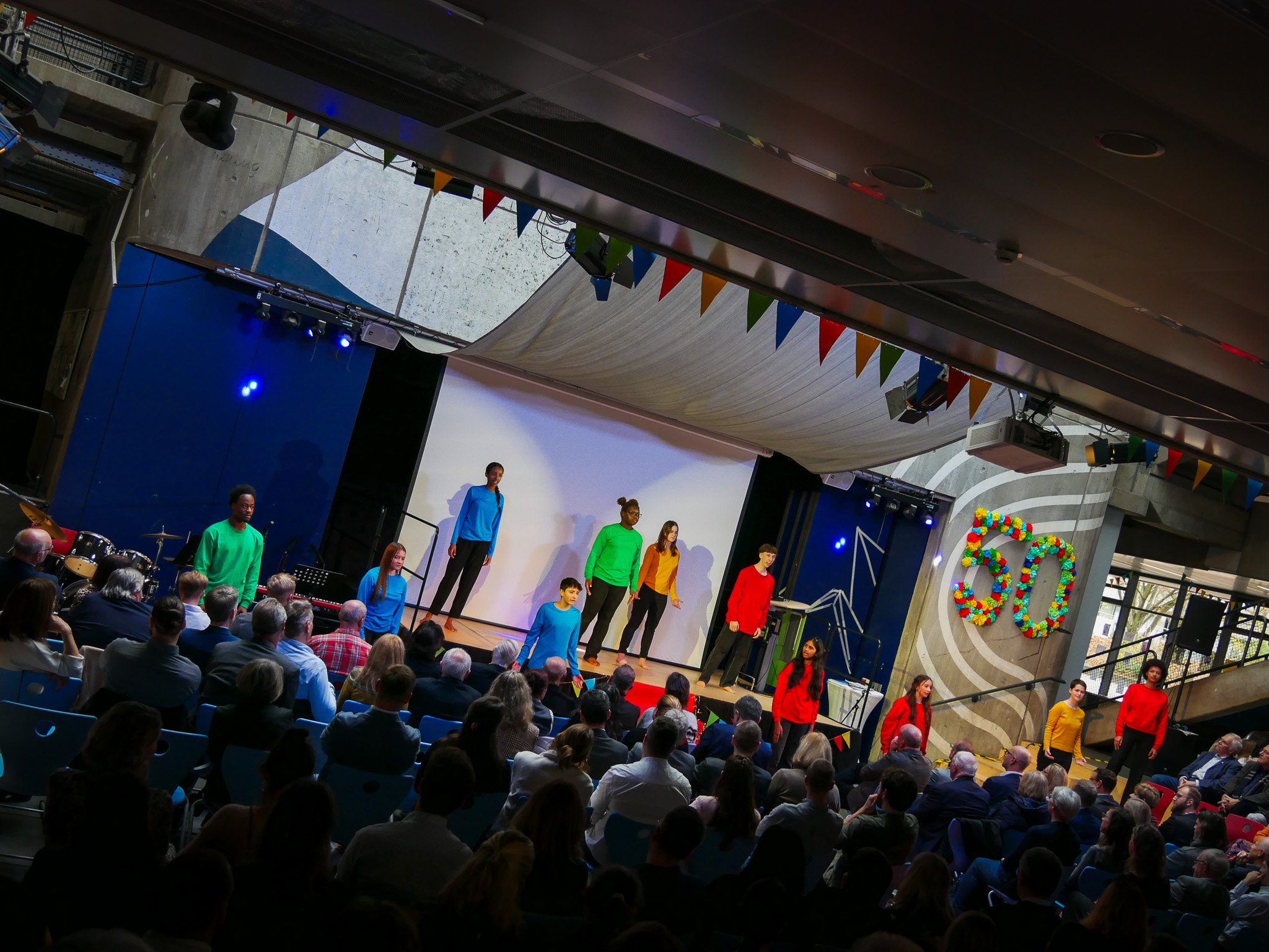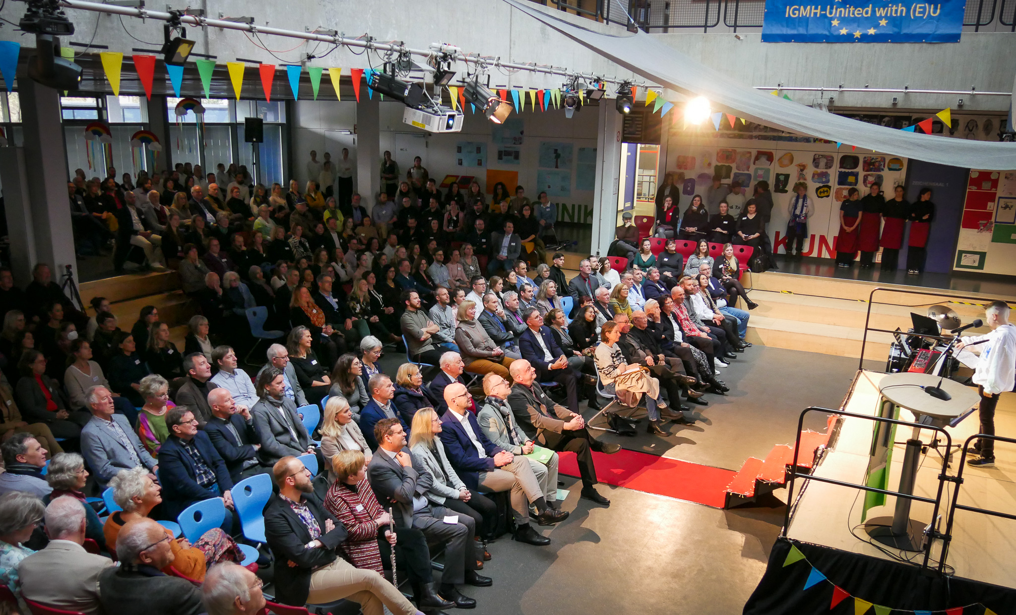 Die IGMH feierte am Mittwoch (20. November 2024) mit einem großen Jubiläumsfest ihr 50-jähriges Bestehen. Schülerinnen und Schüler nahmen in ihrem Jubiläumsprogramm die Gäste mit auf eine multimediale Zeitreise durch die Schulgeschichte. Bürgermeister Dirk Grunert gratulierte der Schulgemeinschaft herzlich zu diesem besonderen Jubiläum und würdigte die beeindruckende Entwicklung der IGMH, die als „Versuchsschule“ begann und heute eine der wichtigsten Bildungseinrichtungen der Stadt ist.
