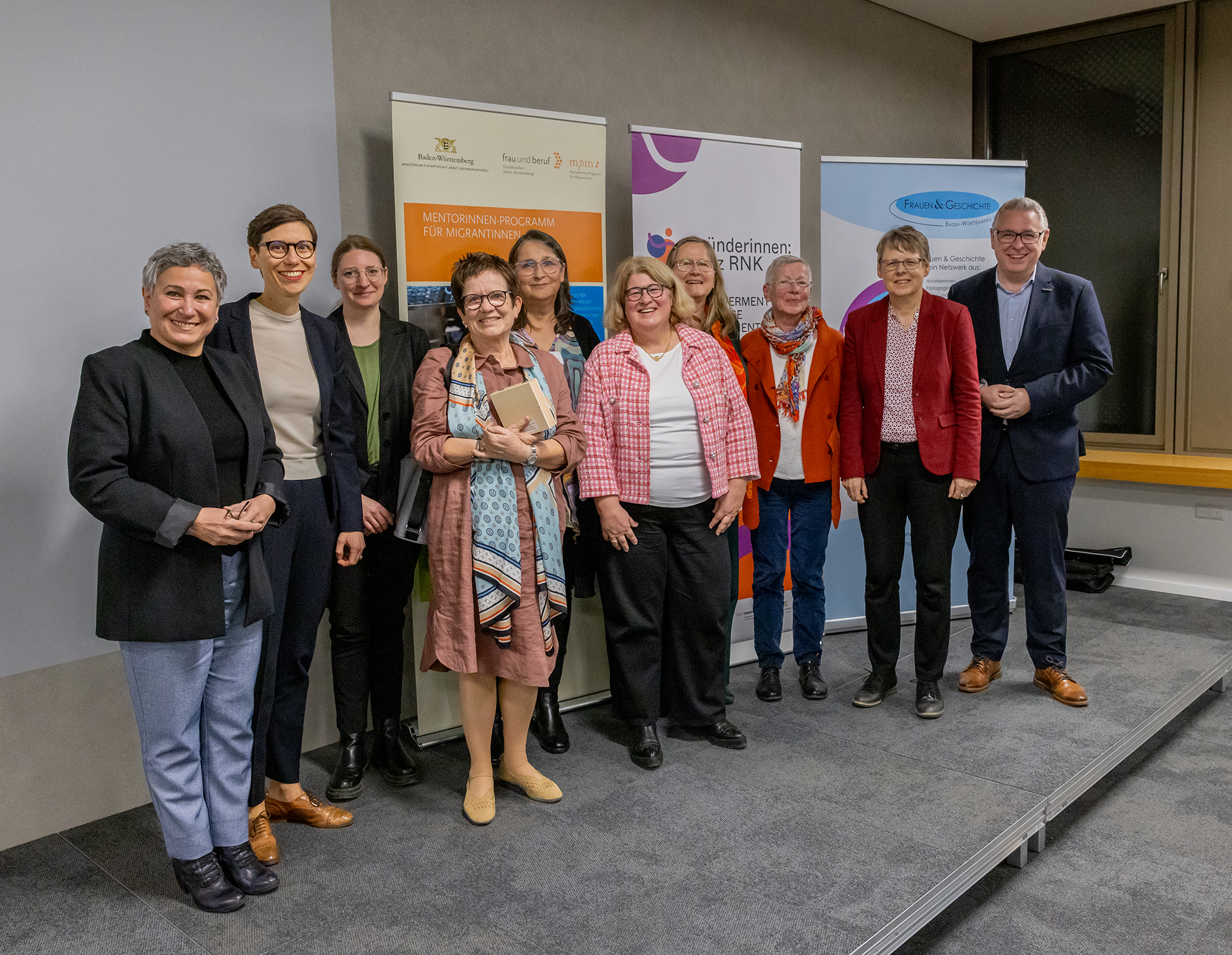 Riehle erinnerte auch an die Anfänge des Programms in Mannheim: Bereits die erste Frauenbeauftragte der Stadt, Ilse Thomas, setzte sich für die eigenständige Existenzsicherung von Frauen durch Erwerbsarbeit ein. Sie gehörte zu den Initiatorinnen des Landesprogramms und übernahm mit Start des Programms die Trägerschaft für die Kontaktstelle Frau und Beruf Mannheim. Heute führt ihre Nachfolgerin Zahra Deilami das Engagement mit Überzeugung fort.