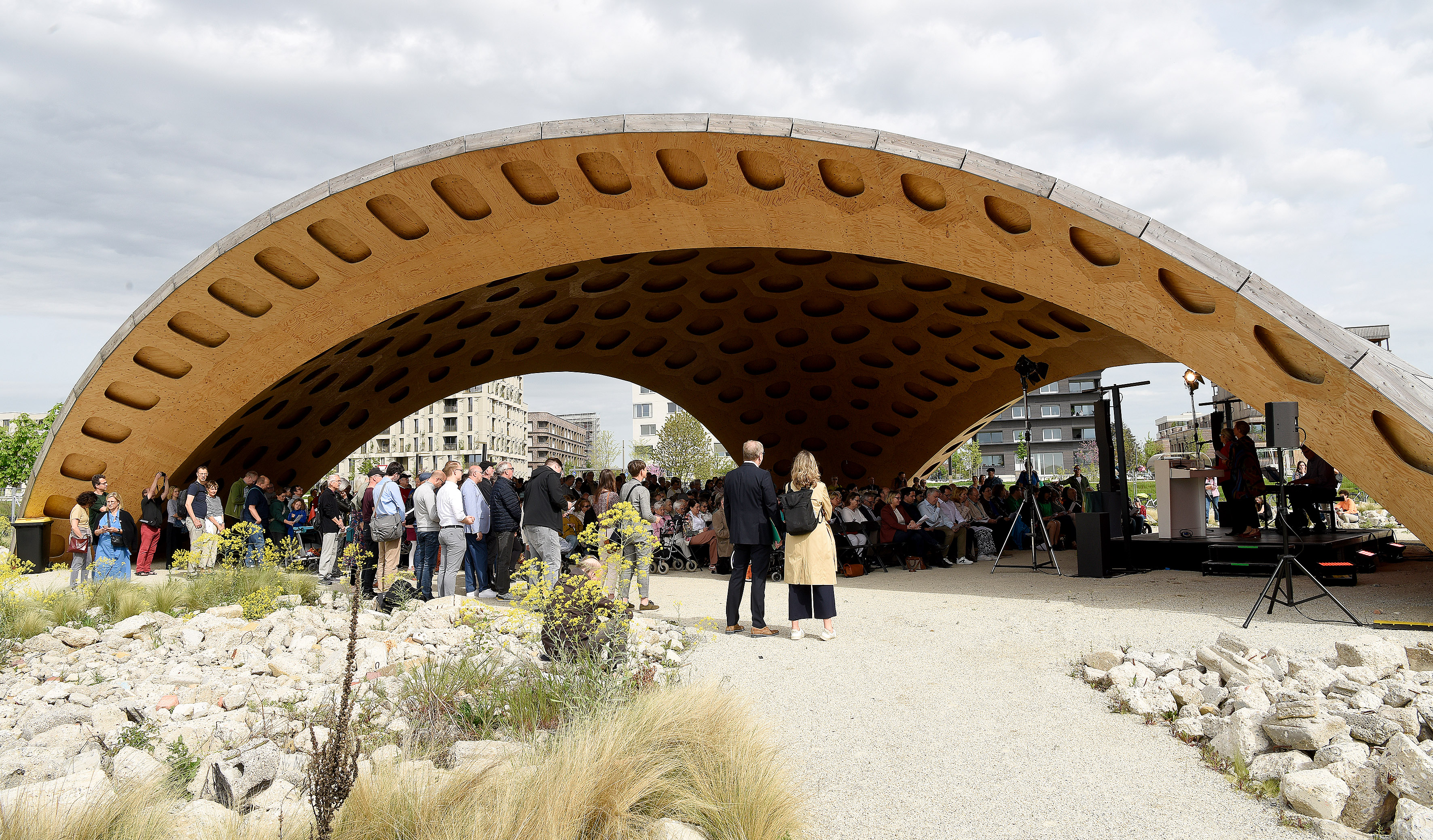 Zugegeben: nicht ganz so viele Menschen wie genau vor einem Jahr zum Auftakt der BUGA 23, aber dennoch sehr viele interessierte Bürgerinnen und Bürger haben sich am heutigen Sonntag auf Spinelli eingefunden, um die Wiedereröffnung des Klimapark-West zu feiern. Bei strahlendem Sonnenschein wurde jetzt der Großteil des ehemaligen BUGA-Geländes auf Spinelli wieder für die Öffentlichkeit zugänglich gemacht.