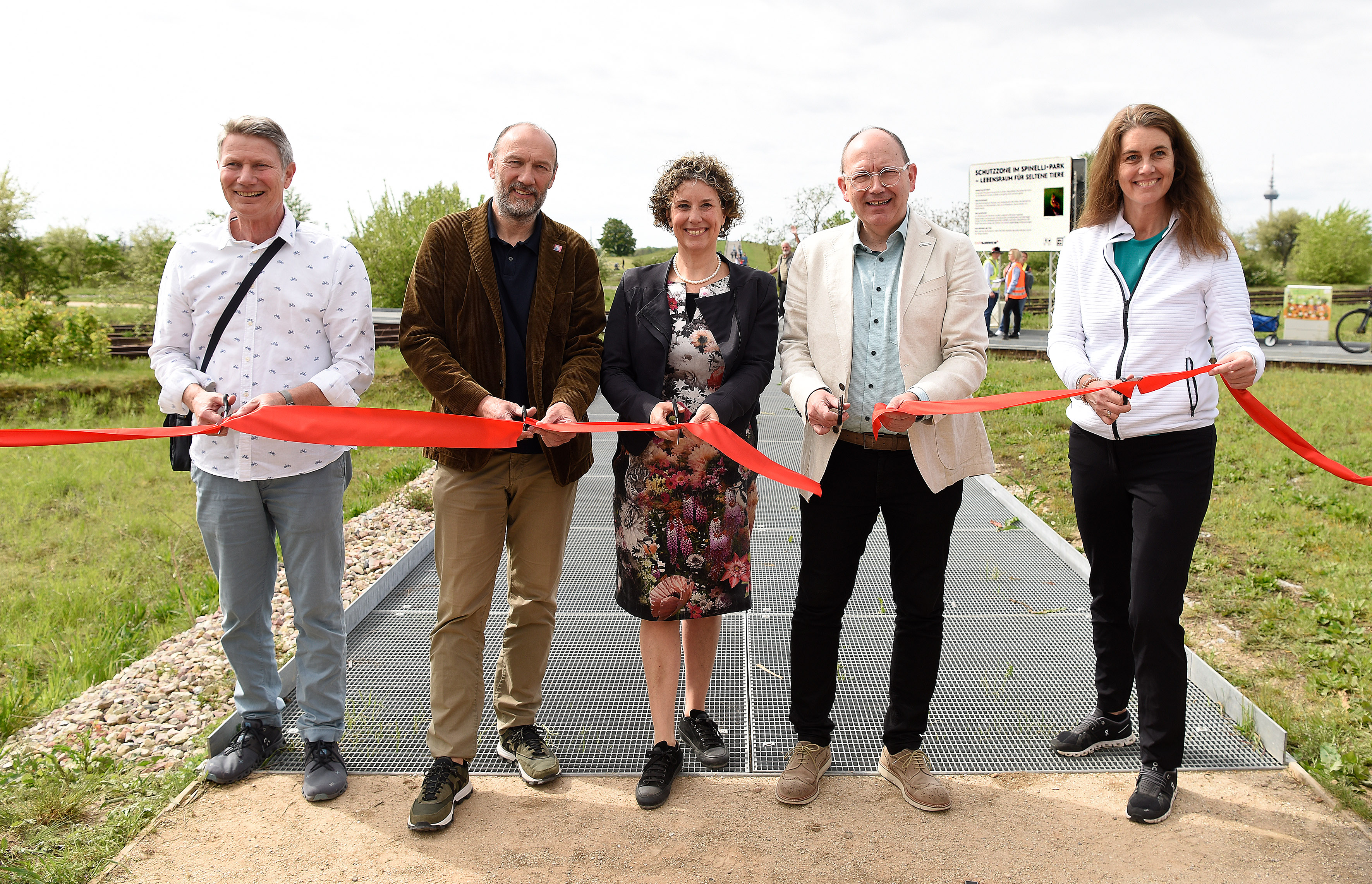 Nach der symbolischen Öffnung des Geländes boten das Naturschutz-Team der Stadt Mannheim, der ehrenamtliche Naturschutzbeauftragte und der NABU Führungen über das Gelände für die vielen Besucherinnen und Besucher an. Dabei gab es viel Interessantes und Wissenswertes zum Thema Natur- und Artenschutz zu erfahren. „Die BUGA 23 war eine große Bereicherung für unsere Stadt. Mit dem Klimapark können wir nun nach Luisenpark und Parkschale ein weiteres Stück BUGA an die Menschen zurückgeben. Und dieses Mal zusätzlich auch an die Natur. Denn Mannheim hat hier viele seltene Arten zu bieten. Sie machen Spinelli besonders. Wir können stolz sein auf Mauereidechsen und Wildbienen, die dort beobachtet werden können. Aber bitte von den Wegen aus. Auch Haubenlerche, Kreuzkröte und Gelbspötter, ein besonderer Vogel, werden hier erwartet. Genießen Sie Ihre Stadt in Einklang mit der Natur“, so Erste Bürgermeisterin Prof. Dr. Diana Pretzell, die selbst eine Führung leitete.