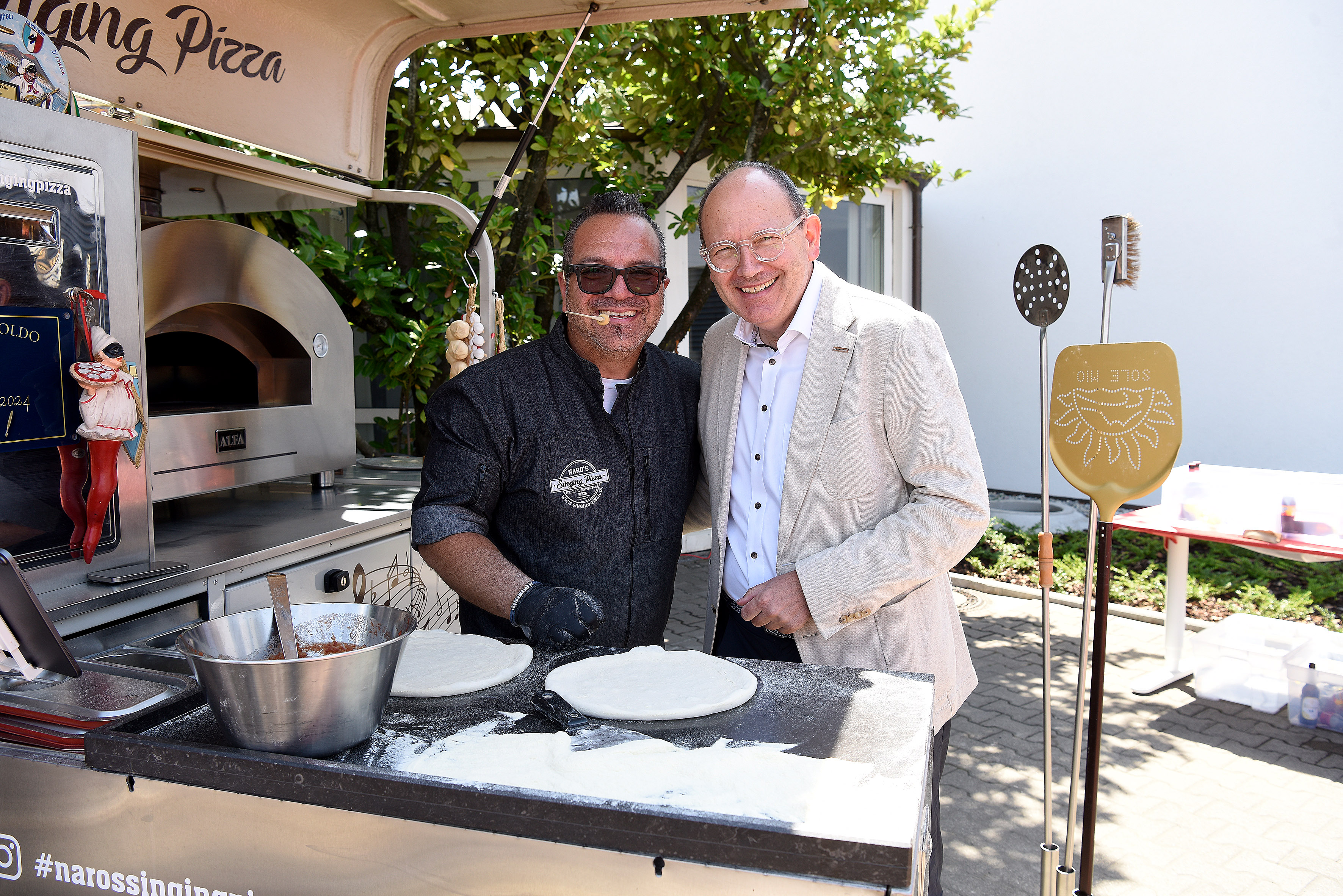Der überraschende Auftritt von Naro’s Singing Pizza rundete den Unternehmensbesuch auf charmante Weise ab. Mit italienischen Liedern und frisch zubereiteten Pizzen schuf der Künstler eine lockere und genussvolle Atmosphäre, die auch den Mitarbeitenden eine besondere Mittagspause bot.