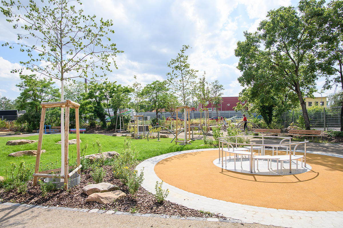 „Der neue Mehrgenerationenspielplatz ist das Ergebnis eines großen Gemeinschaftsprojekts. Die Stadt Mannheim hat rund zwei Millionen Euro in dieses Projekt investiert, um in unmittelbarer Nähe einer großen Schule den öffentlichen Raum neu zu gestalten. Der neue Spiel- und Bewegungspark ist auch ein Beitrag für mehr Sicherheit im Stadtteil und er bringt zudem ein „Stück BUGA“ in den Stadtteil, da die Evangelische und die Katholische Kirche in Mannheim das Material des ökumenischen MöglichkeitsGartens von der BUGA 23 gespendet haben. Der neue Spielplatz bietet allen Generationen einen Ort, an dem sie sich begegnen, austauschen und gemeinsam bewegen können.“