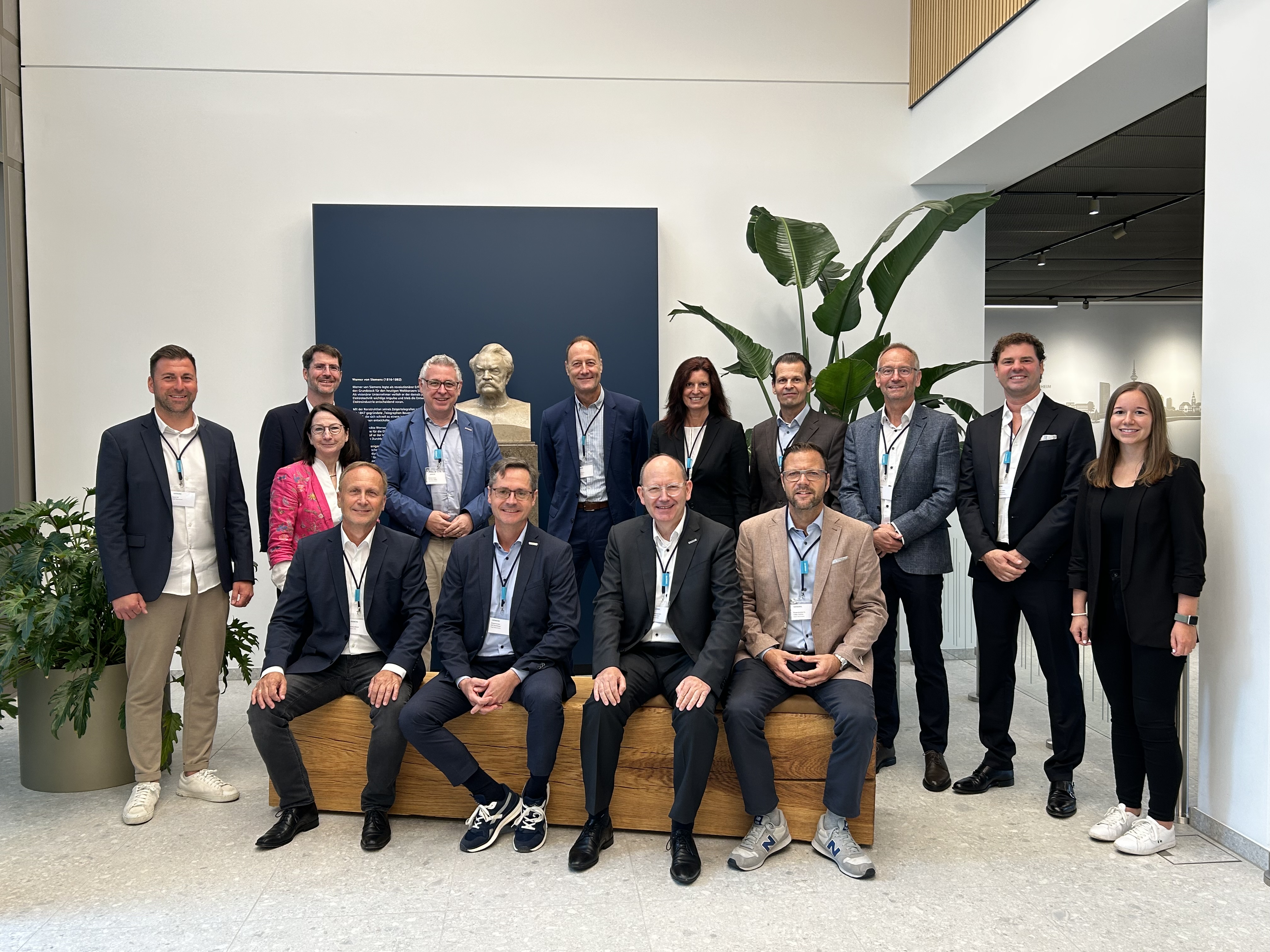 Oberbürgermeister Christian Specht hat kürzlich mit einer städtischen Delegation die neue Mannheimer Niederlassung der Siemens AG in Neuostheim besucht. Mit dabei waren die Bürgermeister Dr. Volker Proffen, Thorsten Riehle und Ralf Eisenhauer, sowie Vertreterinnen und Vertreter des OB-Dezernats, der städtischen Wirtschaftsförderung und des Local Green Deal-Büros der Stadt Mannheim.