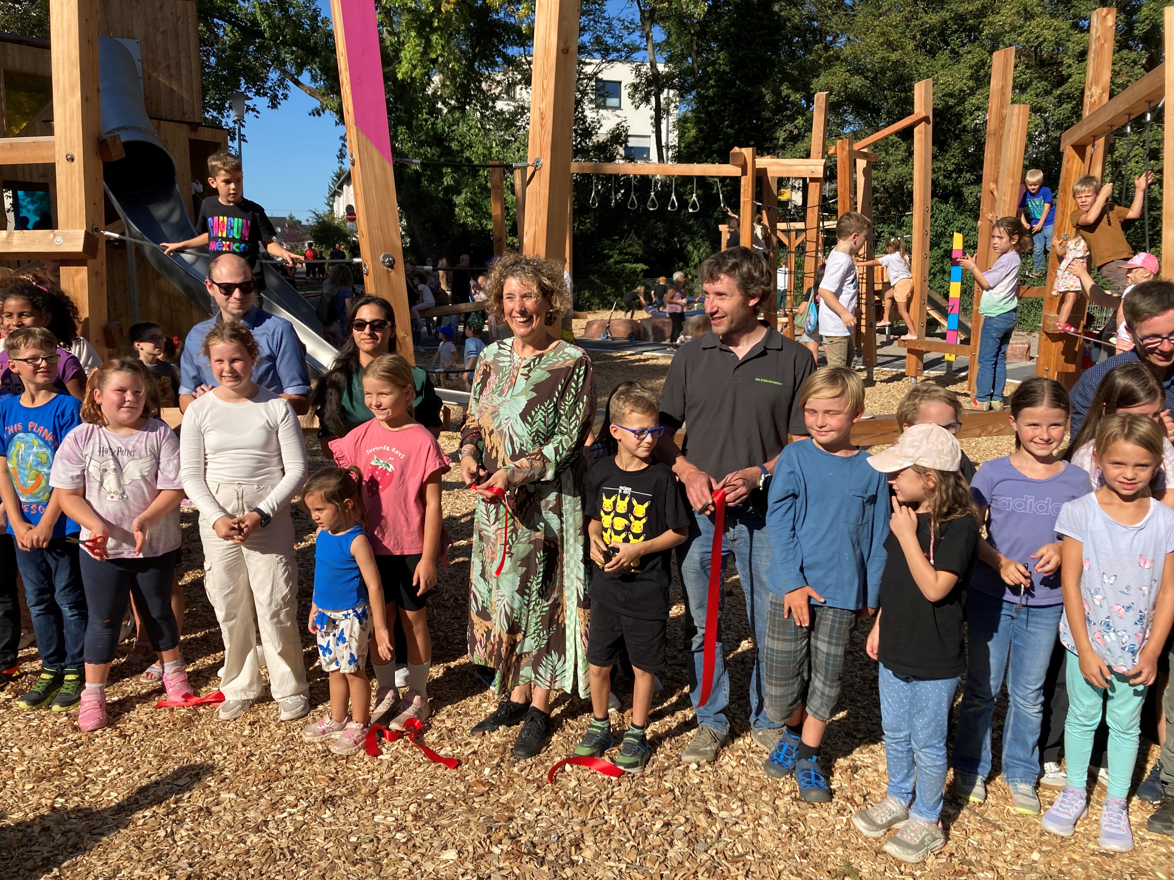Seit Juni hatte die Stadt Mannheim den Spielplatz neben der Friedrichsfeldschule saniert, jetzt ist er frisch eröffnet. Mannheims Erste Bürgermeisterin Prof. Dr. Diana Pretzell kam gestern mit Menschen aus der Nachbarschaft zu einem Fest auf dem Spielplatz zusammen. Auch die Friedrichsfeldschule war dabei.