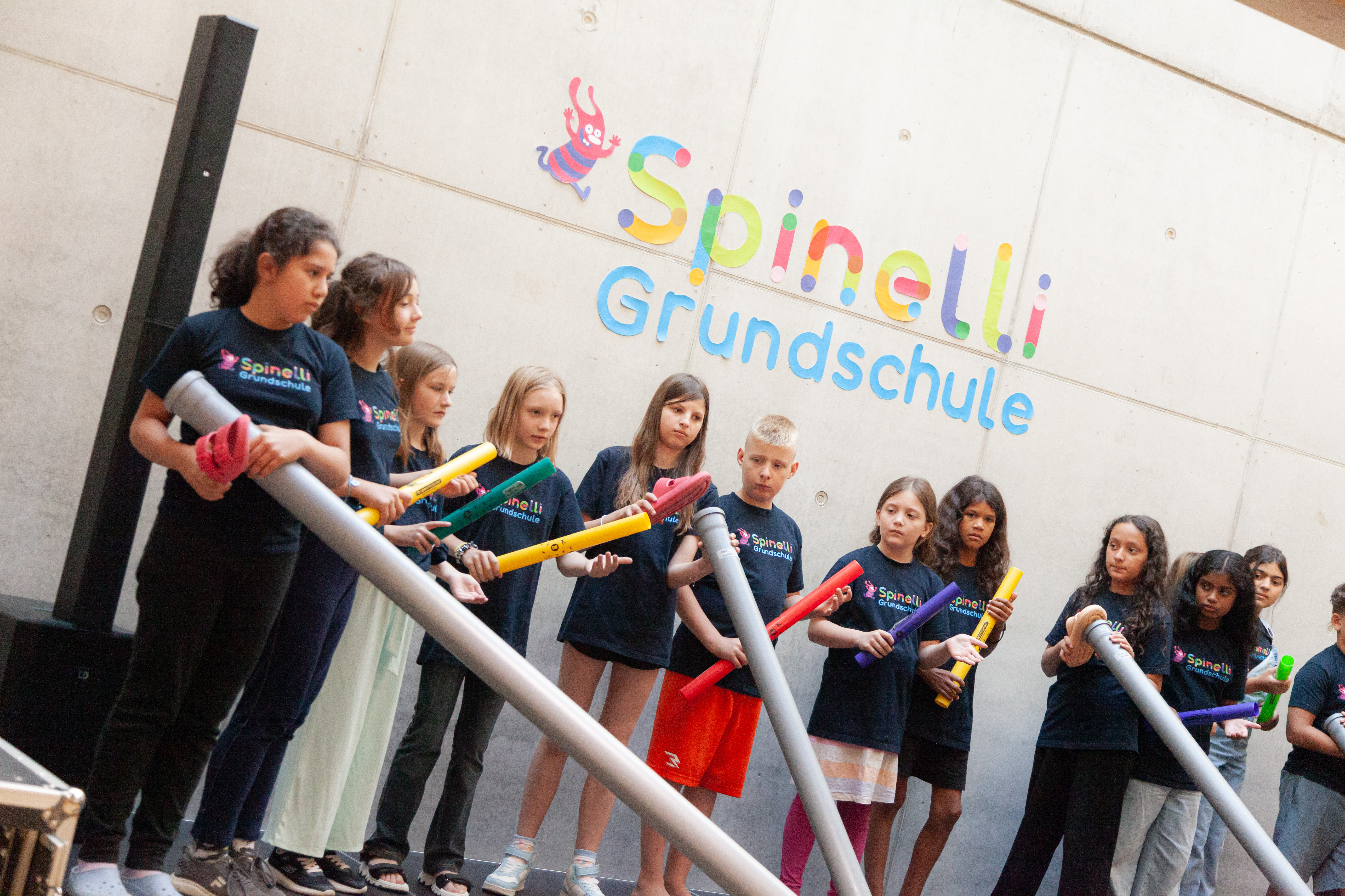 Bereits zum Jahresbeginn hatten die ersten Kinder das neue Schulhaus bezogen – nun erfolgte die offizielle Einweihung der neuen zweizügigen Ganztagsgrundschule. Die Spinellischule ist die erste Schule im wachsenden Quartier auf dem Gelände der ehemaligen Spinelli-Barracks.
