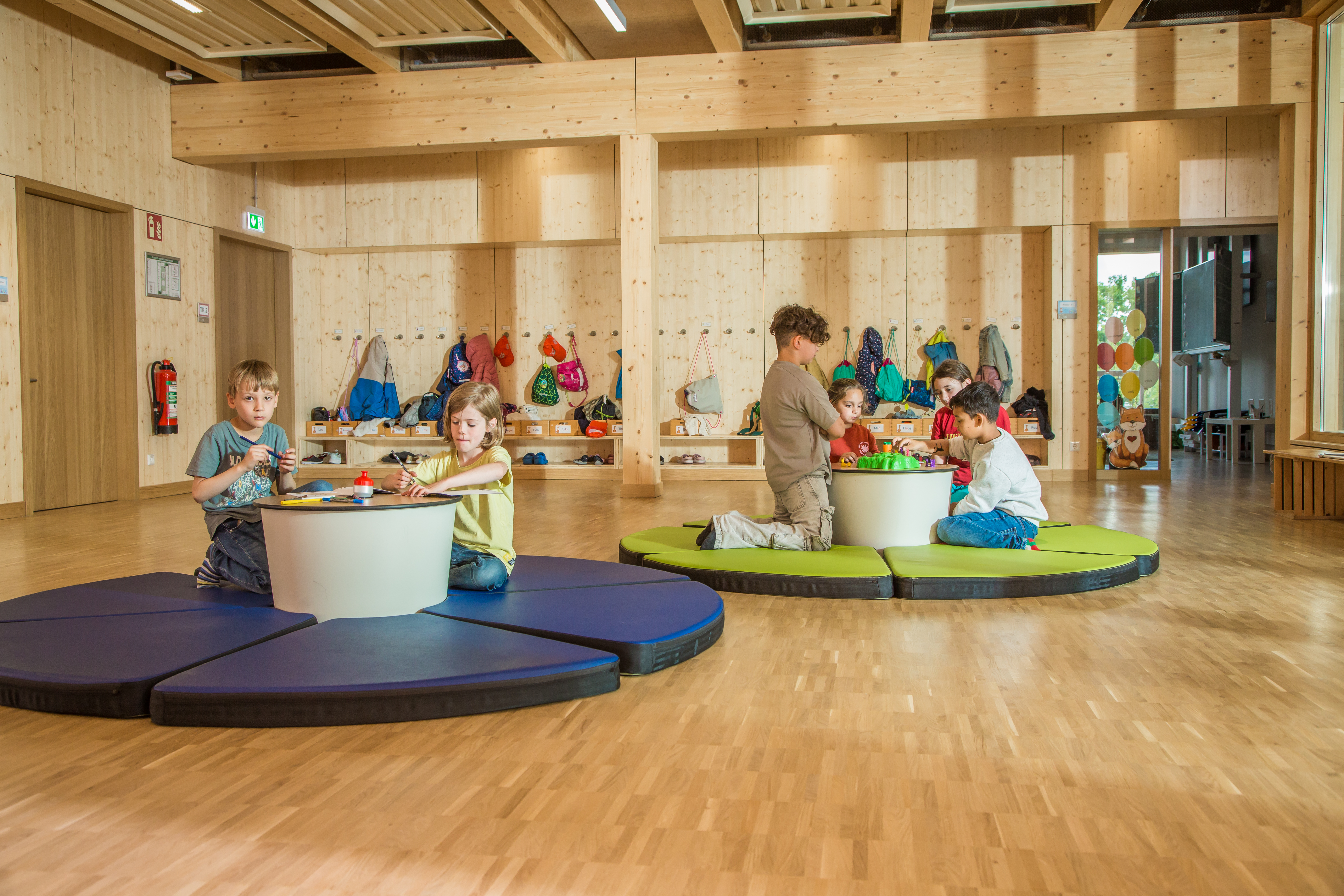 Als gebundene Ganztagsschule werden alle Räume der Schule ganztägig genutzt, um eine möglichst hohe Flächeneffizienz zu erreichen. Im Erdgeschoss befinden sich die klassischen Ganztagsräume, Mensa und Verwaltungsbereiche, während sich die multifunktional genutzten Klassenräume im Obergeschoss um zwei zentrale Freiarbeitszonen ordnen. Aktuell besuchen 65 Schülerinnen und Schüler zwischen 6 und 10 Jahren die neue Schule.