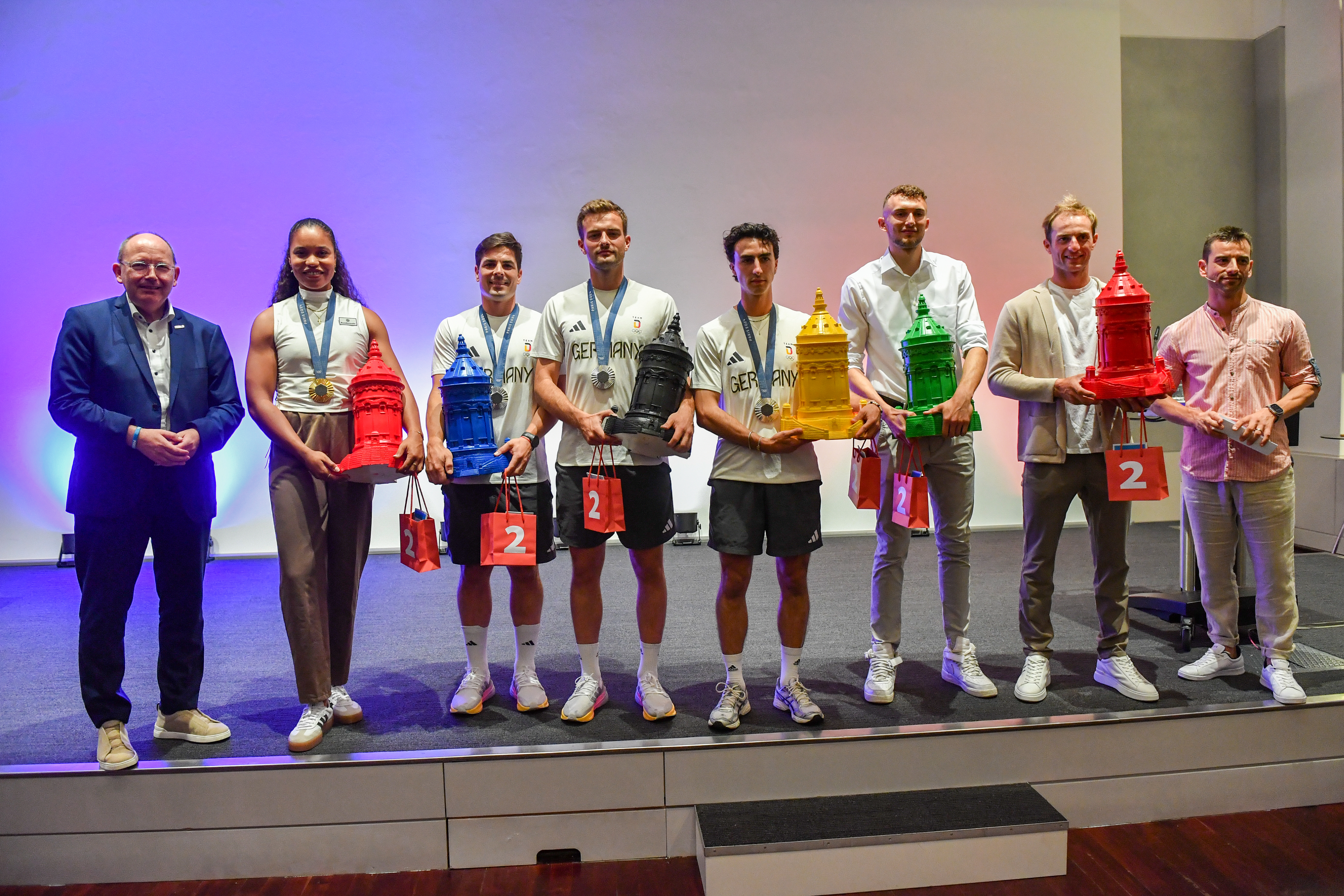 Bei dem Empfang wurden nicht nur die Olympia-Teilnehmenden geehrt, sondern auch die Teams um sie herum – zum Beispiel die Trainer, Physiotherapeuten und Vereinsmanager. Dem Lob und Dank des Oberbürgermeisters schlossen sich zahlreiche Mitglieder des Gemeinderats vor Ort an.