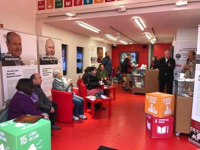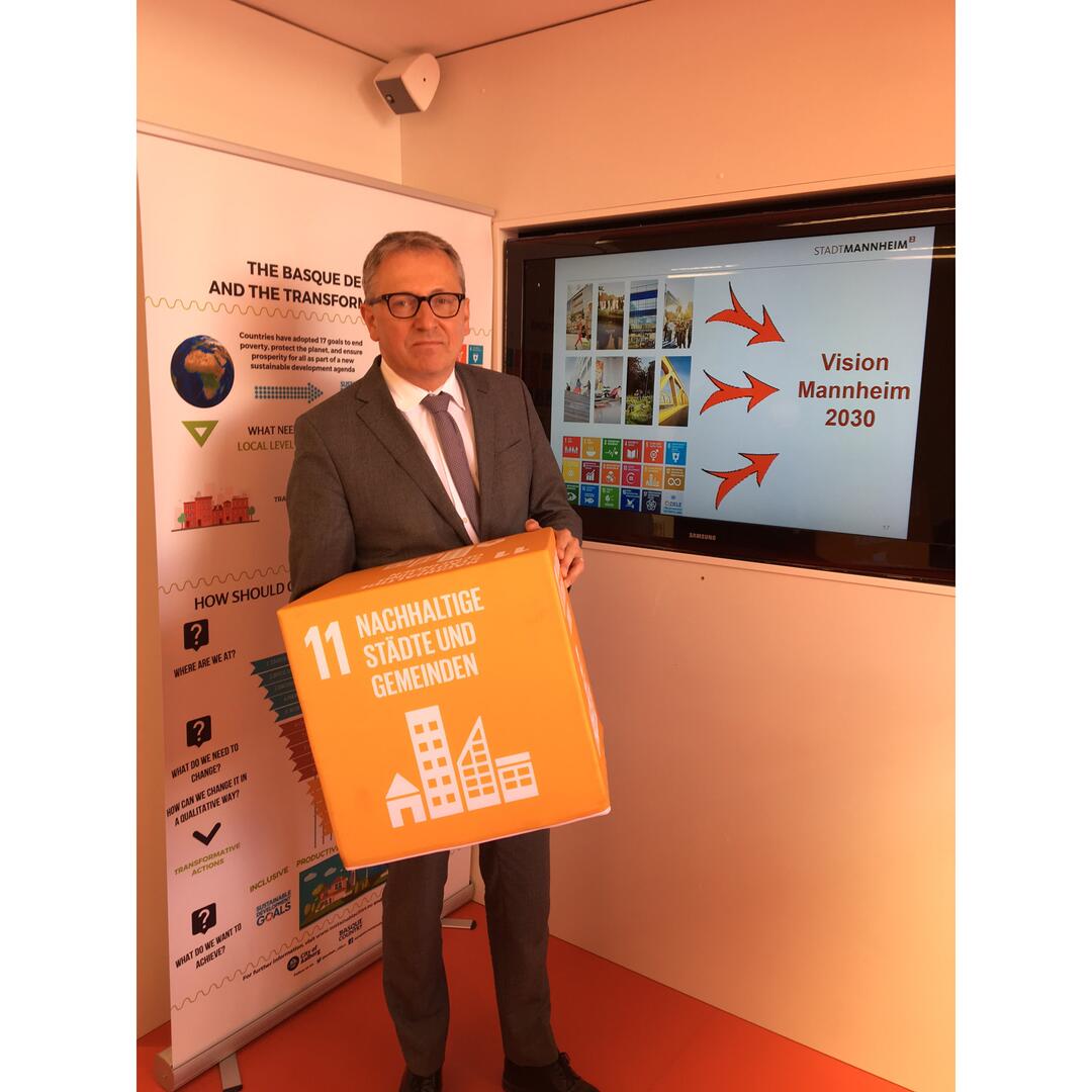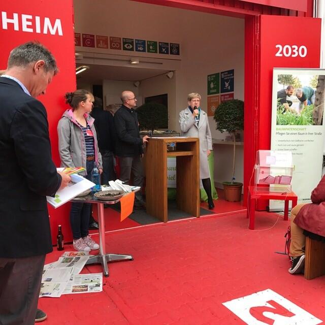 Eine täglich auf dem Maimarktgelände stattfindende Tablet-Umfrage zur Agenda 2030 sowie eine Postkartenumfrage und ein Gewinnspiel zu den Sustainable Development Goals am Stand machten das Themenfeld Nachhaltigkeit zum zentralen Gesprächsgegenstand. Die täglichen Interviews mit Expertinnen und Experten aus der Verwaltung und deren externen Umfeld beleuchteten diverse Nachhaltigkeitsfacetten einer Stadt, darunter den Klimaschutz, die öffentliche Beschaffung, das Grün in der Stadt und auch neue Formen des Wohnens und Zusammenlebens.