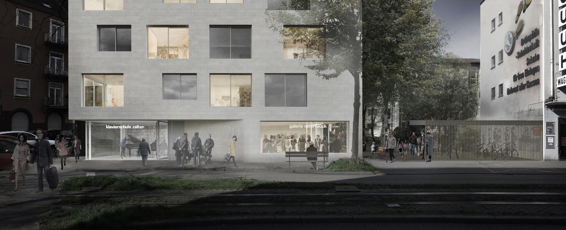 Das Wohnprojekt versteht sich als eine generationsübergreifende Wohngruppe, die attraktive Gemeinschaftsbereiche errichten will. Die gemeinschaftlich genutzten Flächen befinden sich im Erdgeschoss und auf dem Dach und sind barrierefrei über ein kompaktes Treppenhaus mit Aufzug verbunden. Unten mündet dieses in den Eingangsbereich mit Zugängen zum Gemeinschaftssaal, bzw. dem Atelier, während oben die Dachterrasse mit Ausblick, urbanem Garten und Outdoorküchen zum Verweilen und Spielen einlädt.