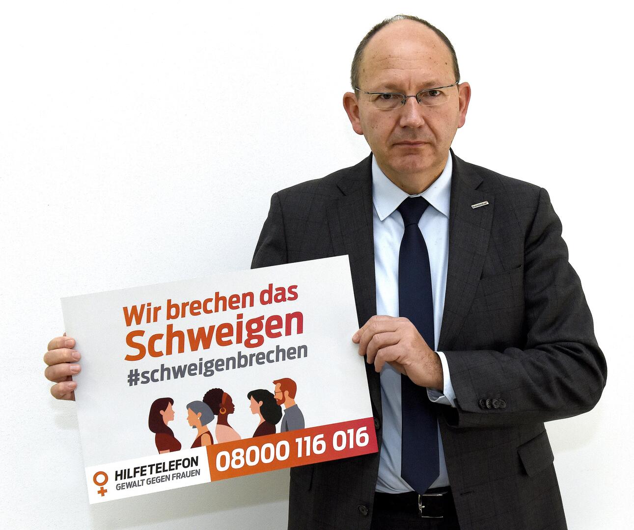 Herr Polizeipräsident Siegfried Kollmar sagt zur Situation in Mannheim: „Häusliche Gewalt, Zwangsehen, Stalking, Intimizid – das sind alles Formen der Gewalt gegen Frauen, mit denen wir uns als Polizei immer wieder konfrontiert sehen. Die Fallzahlen bewegen sich dabei leider seit Jahren auf relativ hohem Niveau. Um den hohen Stellenwert dieses Themas innerhalb des Polizeipräsidiums Mannheim und unsere Solidarität zu zeigen, beteiligen auch wir uns an der bundesweiten Mitmachaktion des Hilfetelefons Gewalt gegen Frauen unter dem Motto "Wir brechen das Schweigen".