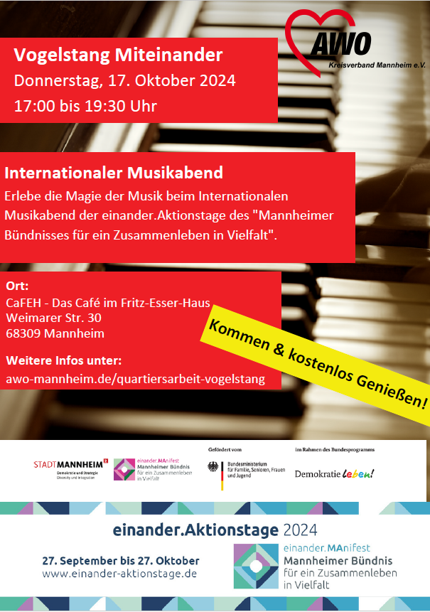 Projektträger*in: AWO Kreisverband Mannheim e.V. / Quartiersarbeit Vogelstang