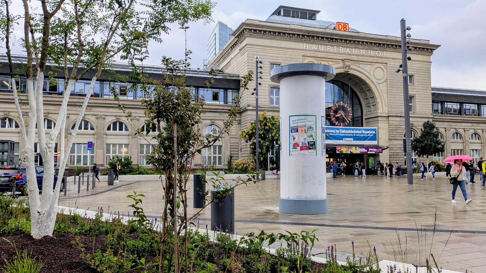 Es ist ein übersichtlicher und heller Vorplatz als Entrée zur Innenstadt mit neuen Haltestellen des ÖPNV und vielen Sitz- und Aufenthaltsmöglichkeiten ist entstanden. Insgesamt bieten zehn neue Grüninseln mit ihren großzügigen Einfassungen attraktive Sitzmöglichkeiten im Schatten an und werden sehr gut angenommen. Mit ihren großzügigen abwechslungsreichen Bepflanzungen leisten sie einen wichtigen Beitrag zur Kühlung, Biodiversität und Entsiegelung des innerstädtischen öffentlichen Raums. In den insgesamt neu gestalteten 17.500 m² (inklusive Haltestellen und Gleise) befinden sich neben den Flächen für die notwendigen Verkehrsfunktionen und die Erschließung, u.a. zahlreiche gastronomische Einrichtungen mit Flächen für Außengastronomie unter den großen Platanen, viele neue Fahrradständer, eine neue großzügige Fahrradverleihstation, ein Gedenken an die Deportationen nach Gurs, ein Elektro-Poller für Veranstaltungen auf dem zentralen Vorplatz sowie eine einheitliche neue Beleuchtung. Die eingesetzten hellen Materialien wirken aufgrund ihres hohen Reflexionsgrades der Aufheizung entgegen (Albedo-Effekt).