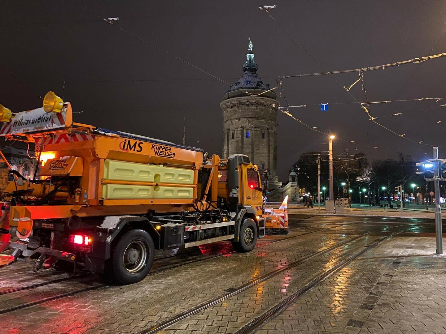 Immer Anfang November ist der Stadtraumservice Mannheim startklar für den Winterdienst. Bei sinkenden Temperaturen müssen vor allem die Brücken kontrolliert werden. Ca. 220 Mitarbeitende des Stadtraumservice und technische Mitarbeitende weiterer Dienststellen, die bei Schnee und Eis den Winterdienst unterstützen, sind in Bereitschaft. Bei einem Glätteeinbruch sind die städtischen Mitarbeitenden bereits in den frühen Morgenstunden zu Fuß und mit ihren Streufahrzeugen rund um die Uhr im Einsatz. Die Sicherheit der Verkehrsteilnehmenden insbesondere im fließenden Verkehr hat höchste Priorität: Bei starkem Schneefall werden zuerst wichtige Verkehrswege, Brücken und Kreuzungsbereiche von Schnee und Eis befreit. Die wichtigsten Radwege werden im Einsatzfall, ebenfalls in der höchsten Prioritätsstufe, mit 10 Kleinstreuern geräumt und gestreut. Radwege der höchsten Prioritätsstufe, die sich auf Fahrbahnen befinden, werden von den Großstreuern mitbedient. Nach den verkehrswichtigen Straßen folgen weitere Straßen und Plätze, deren Reihenfolge anhand einer Prioritätenliste und akuter Meldungen abgearbeitet wird.