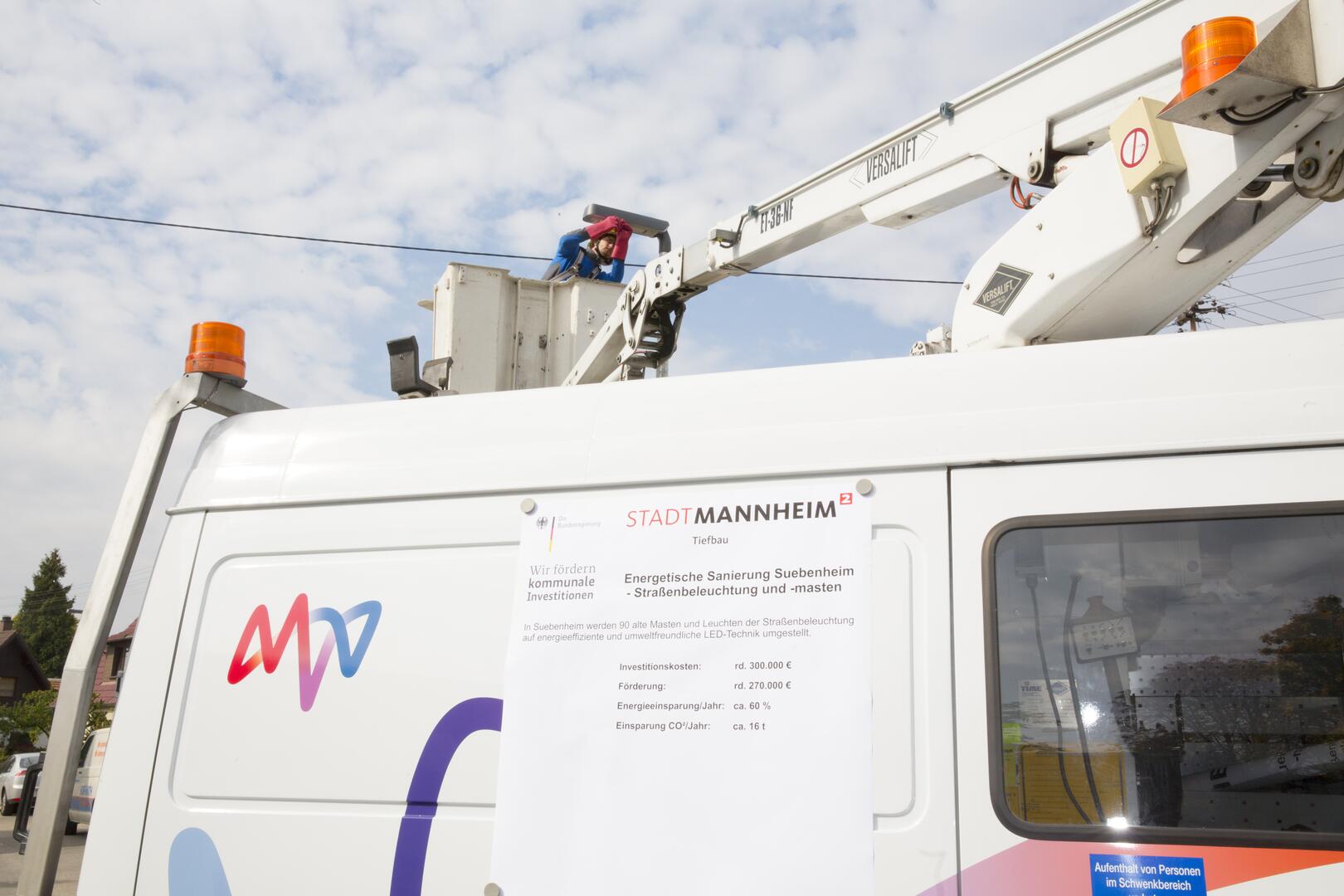 In Suebenheim werden 90 alte Masten ausgetauscht und Leuchten auf energieeffiziente und umweltfreundliche LED-Technik umgestellt.