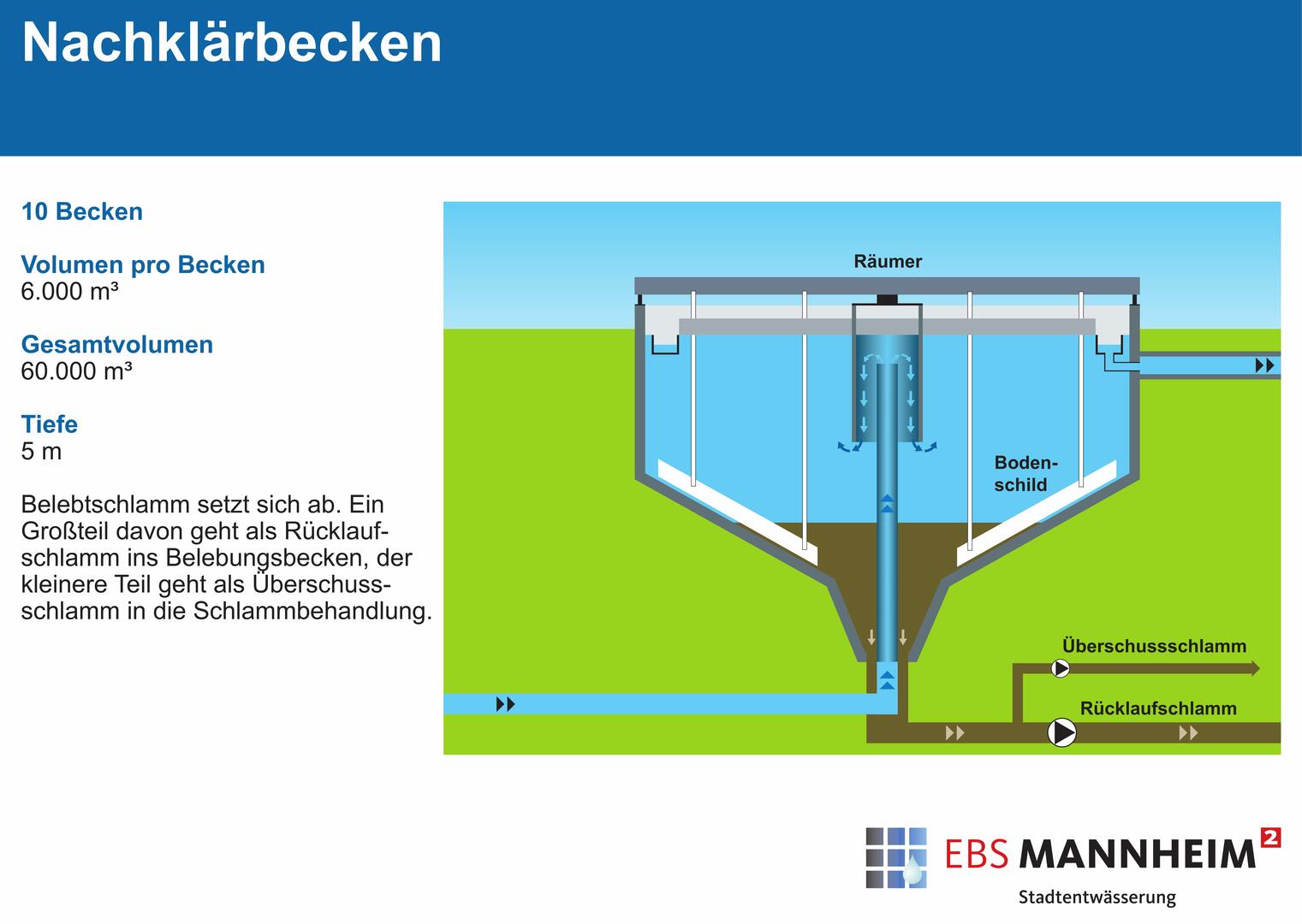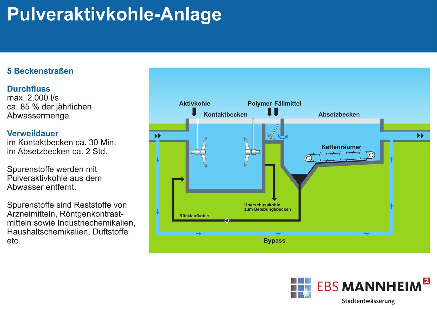 Mithilfe von aufwändigen Verfahren wird das Abwasser der Stadt Mannheim weitgehend von Schadstoffen, Nährstoffen und Spurenstoffen befreit, bevor es in den Vorfluter Rhein fließt.