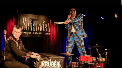 Erleben Sie die Rock’n’Roll-Kings von „Krüger Rockt!“ einmal ganz anders mit einem Bühnenprogramm, das aus sieben Jahrzehnten des letzten Jahrhunderts alles zu bieten hat, was das Herz begehrt und keine Wünsche offen lässt. Während Piano-Killer Harald „Lee“ Krüger das Tastenwerk malträtiert, wird sich Trommler Walt Bender dabei nicht nur auf das Schlagzeugspiel beschränken, sondern auch seine Fähigkeiten am Banjo, der Gitarre, der Ukulele, am Teekistenbass uvm. unter Beweis stellen.